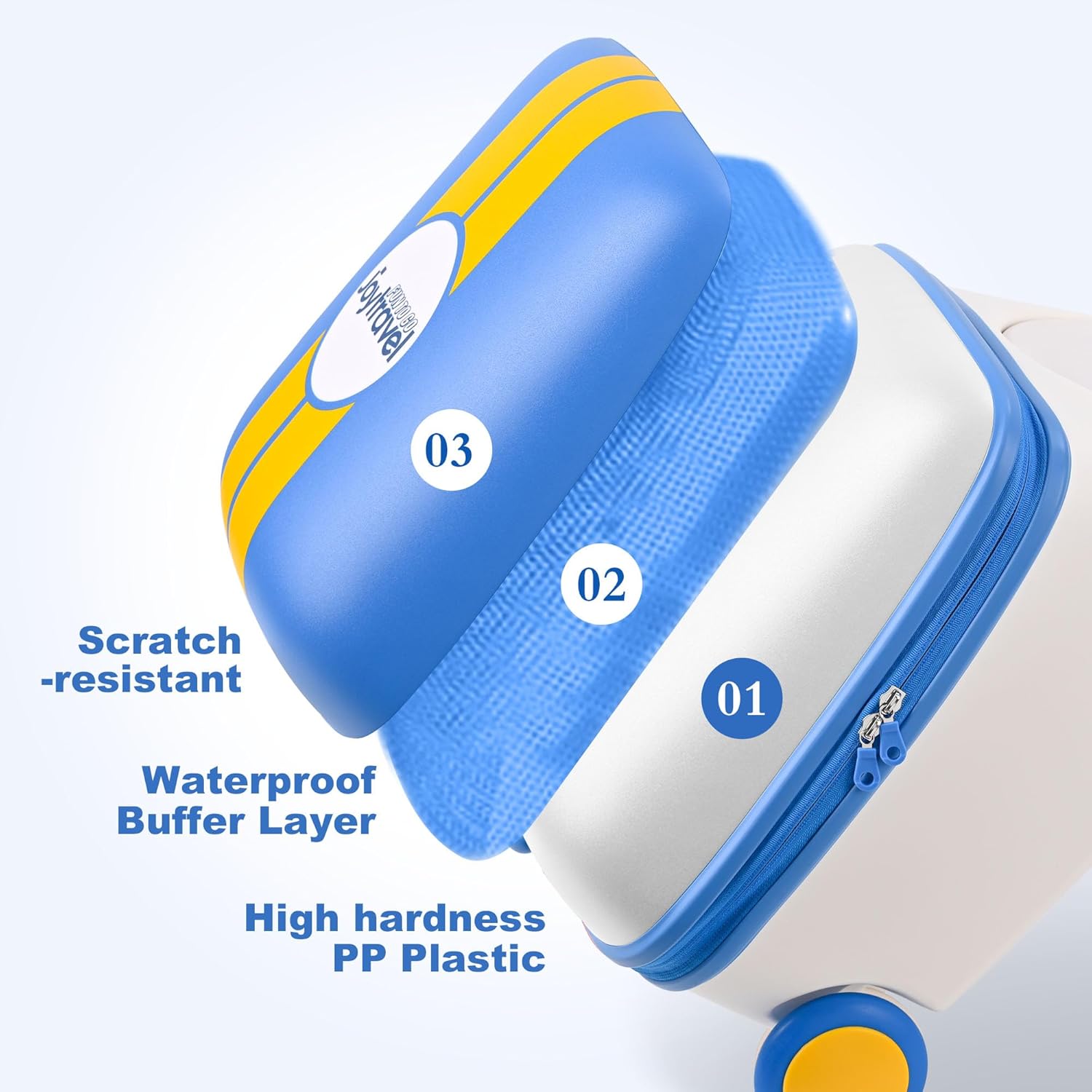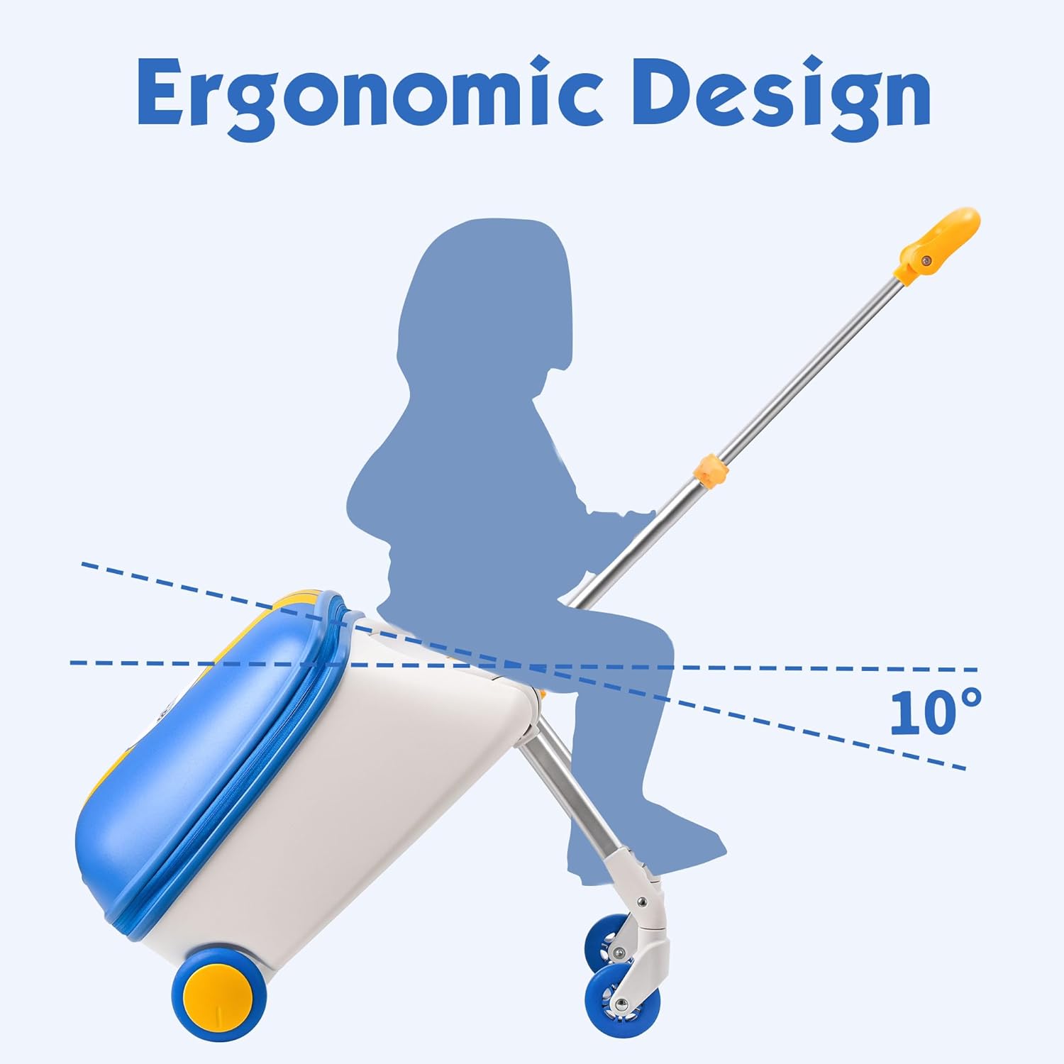 - 【Ride-able Luggage for Kids】Our ride-on luggage is a trolley case+ suitcase design, which can take your children and luggage away together and making it the perfect solution for traveling with kids. It's an excellent way to seamlessly get your children from the car to the airport and onto the plane with ease.Designed for children 3-7 years old and total maximum recommended weight is 66 lbs.