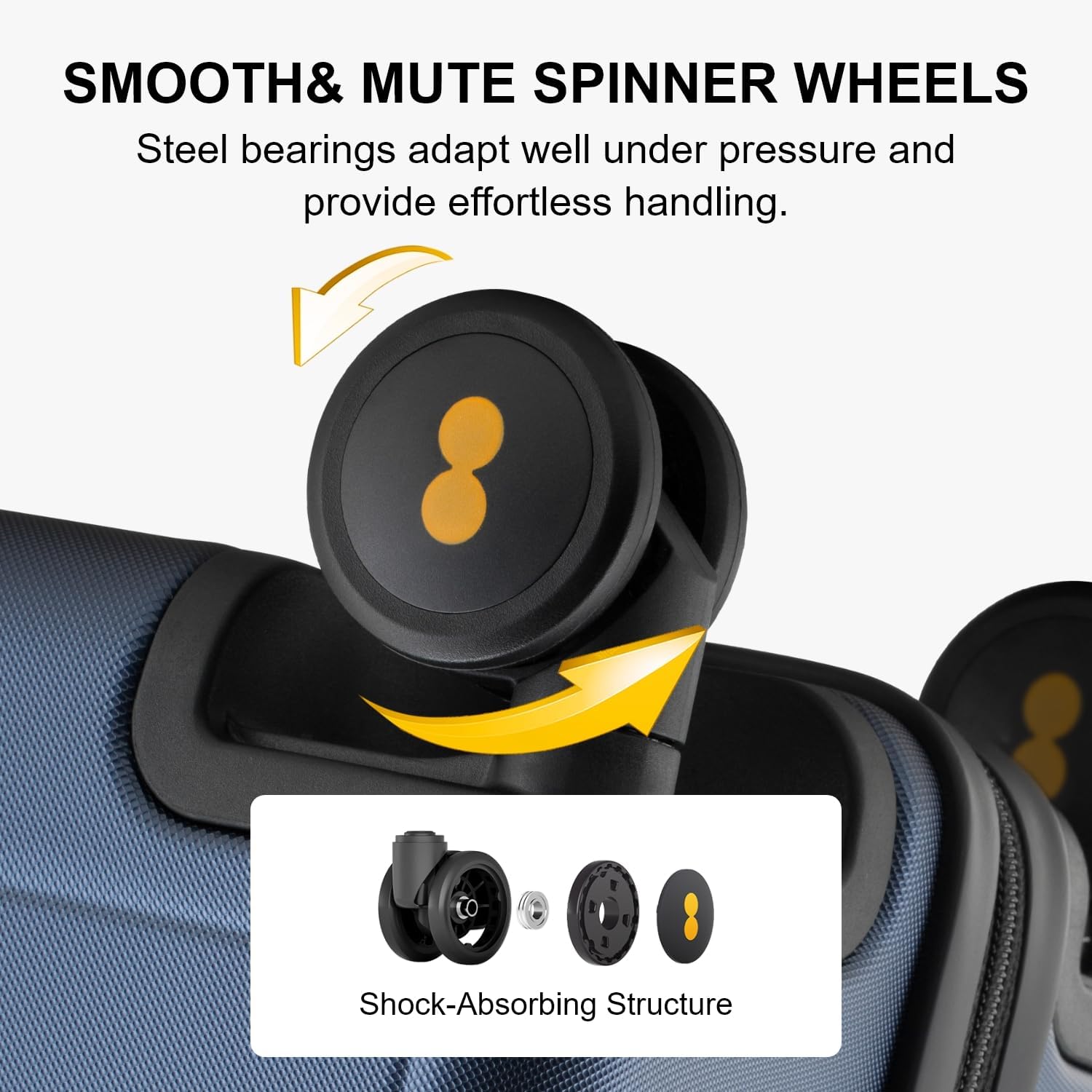 - More Effortless Traveling: This suitcase equipped with 8 silent universal spinner wheels and aluminum telescoping ergonomic handle with 4 levels for effortless control and maneuverability; Equipped with top and side easy grab handles; Bumper feet on side for protecting the case
