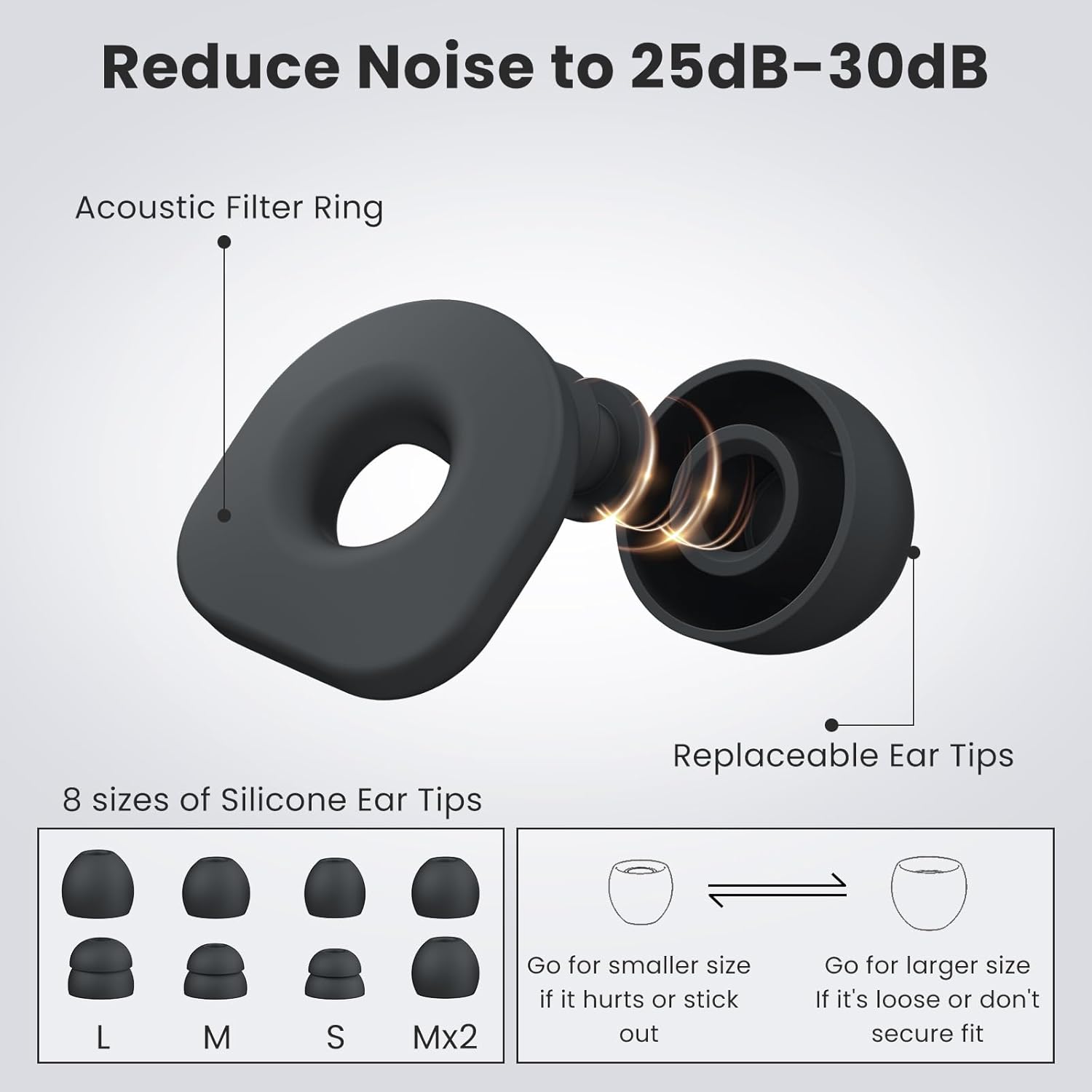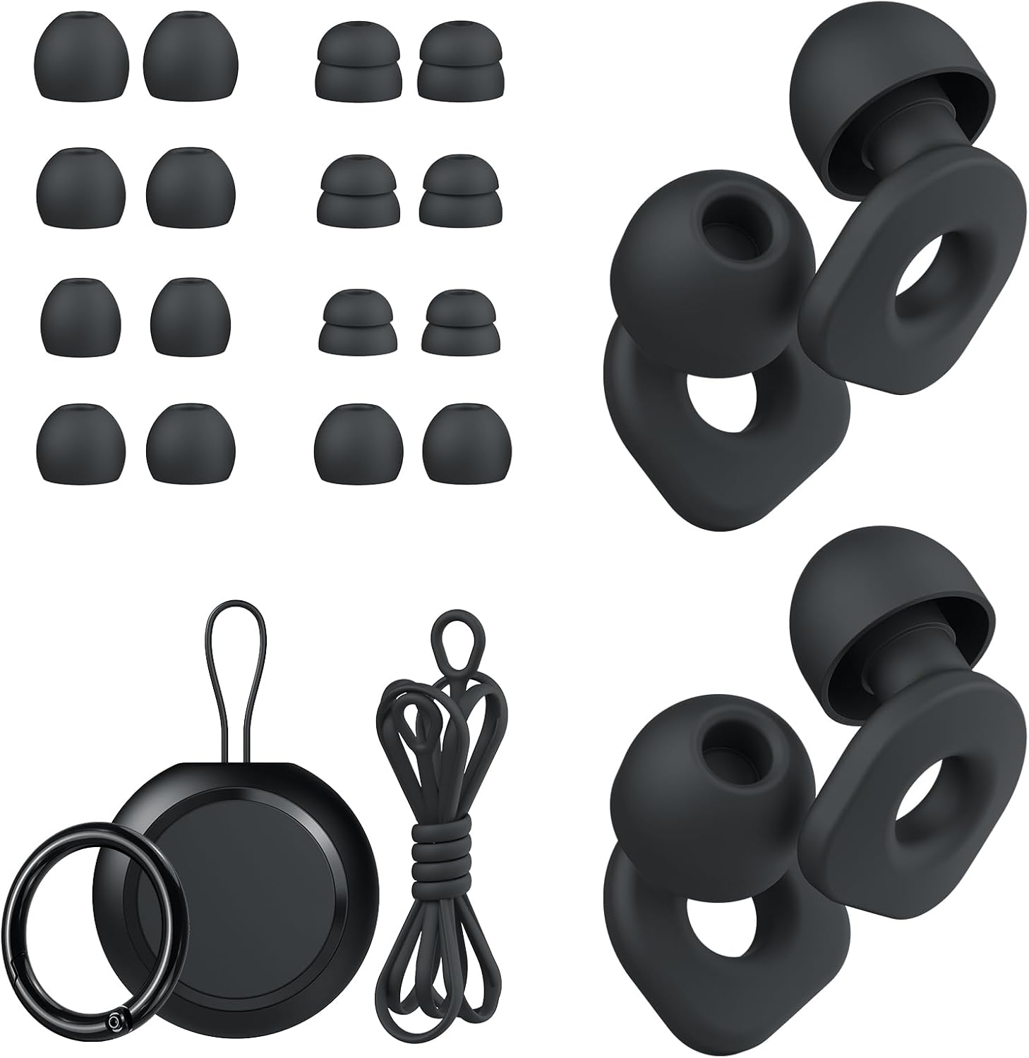 - Package Included: 2 pairs of Earplugs, 5 pairs of Soft ear tips sizes,3 pairs of double-layer ear tips, 1 piece of black carrying box, 1 piece connector cord, 1 piece round key chain ring,1 piece cable buckle. Hope that our earplugs can bring quiet world to you, enjoy your-self's life.