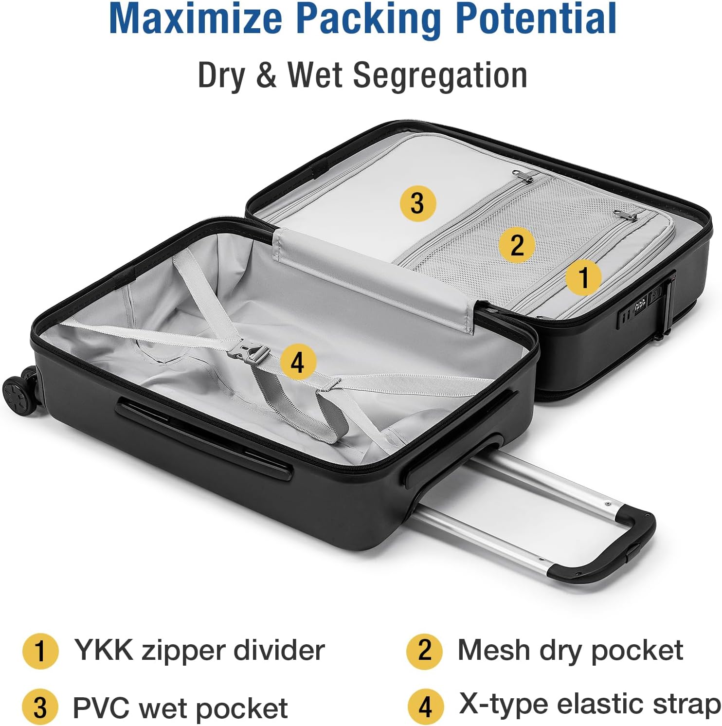 - Maximized Storage Design: With dimensions of 22"x14"x10", this suitcase includes a large-capacity zipper pocket, dry and wet segregation, and a strong X-type elastic strap to fully optimize packing space and keep your belongings neatly organized.