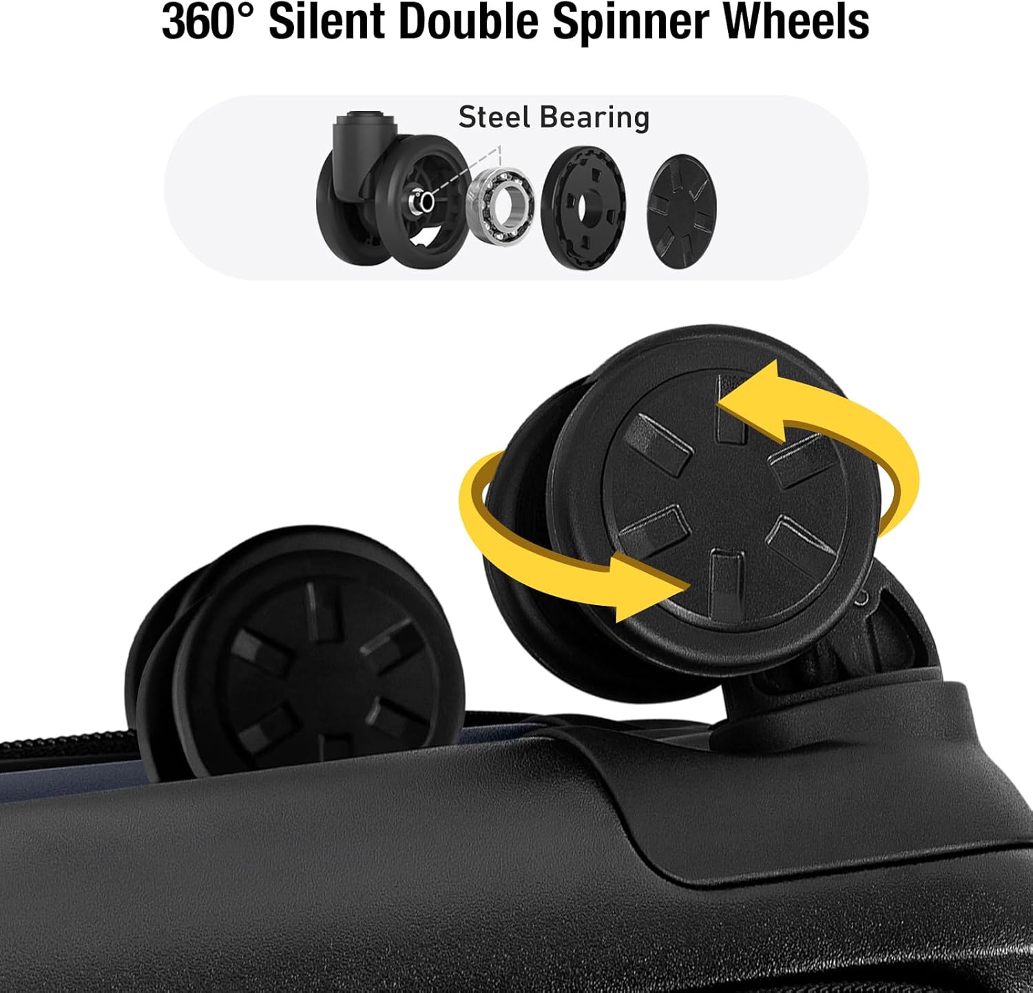 - Smooth 360° Spinner Wheels: Equipped with quiet, durable 360° spinner wheels, this suitcase glides effortlessly across various terrains, including cobblestone roads and carpets, making travel hassle-free and comfortable.