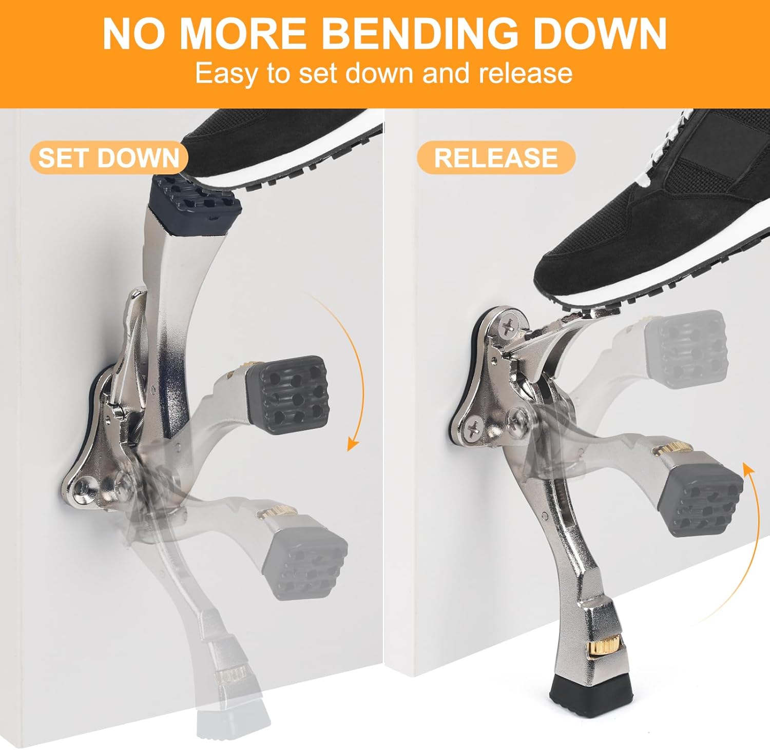 - 【EASY TO INSTALL】The one-touch kickdown door stopper is easy to install. Position the door stopper on the desired spot on the door panel, and secure it with screws—no need for complicated tools or professional assistance.
