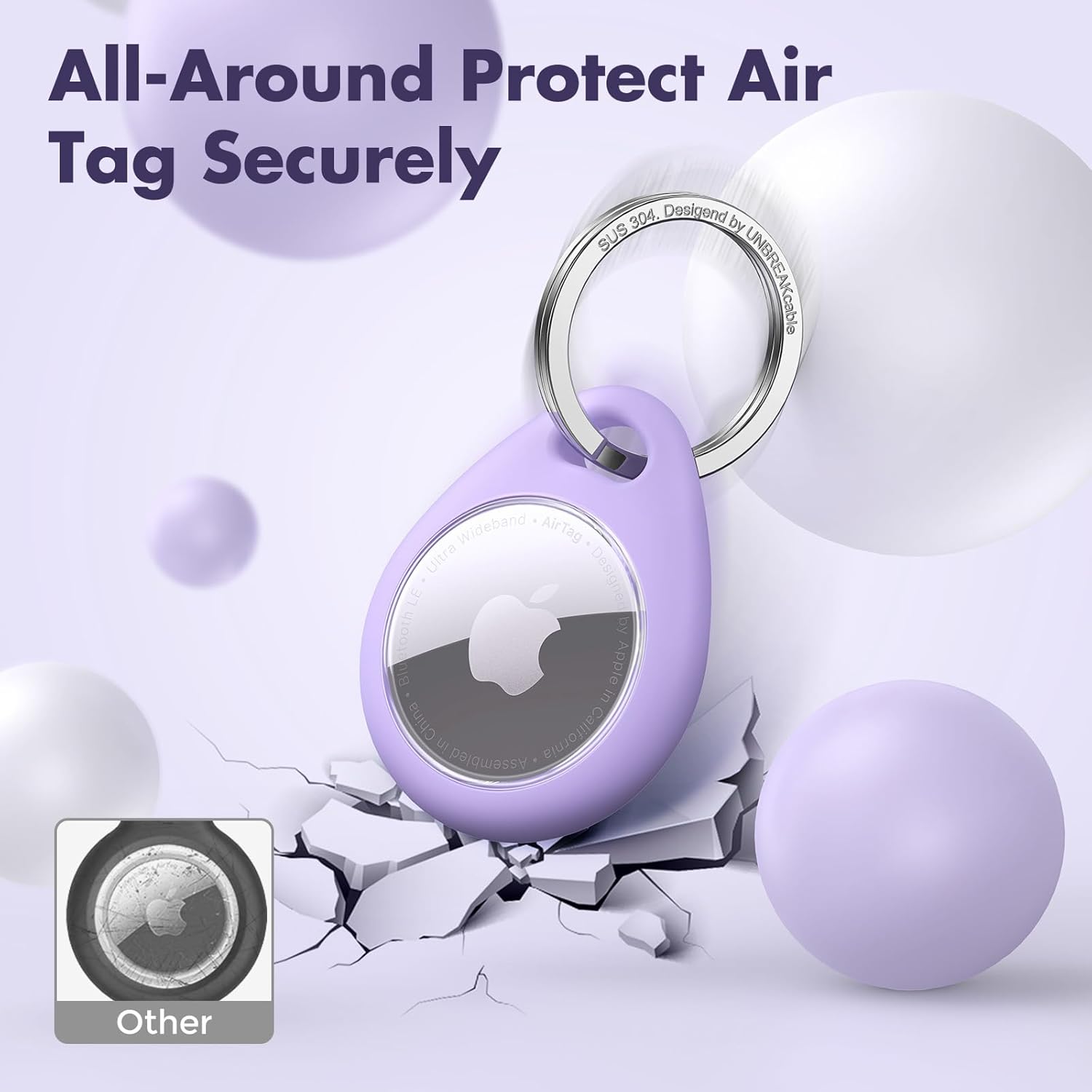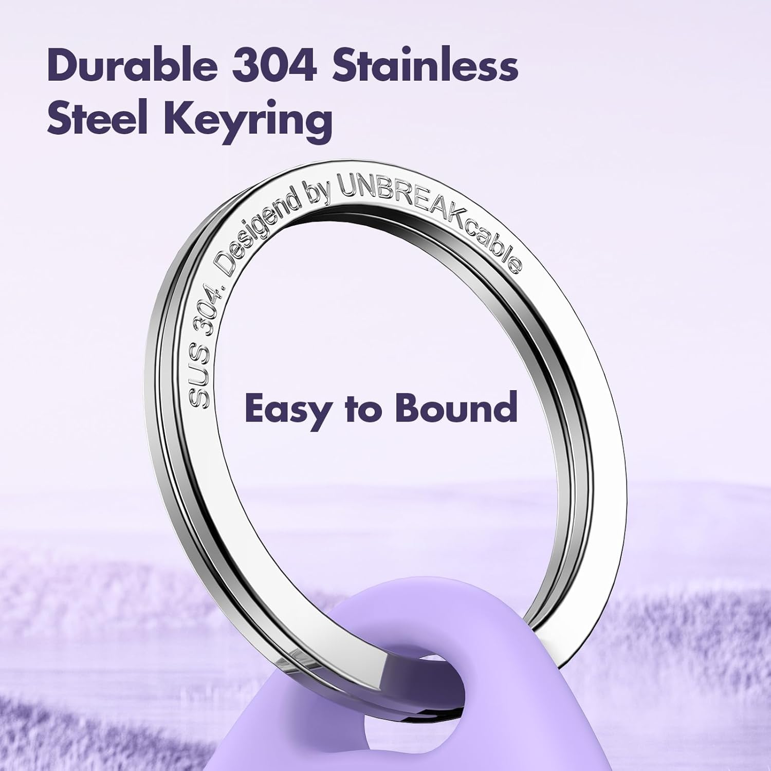 UNBREAKcable 4 Pack Macaron Colored for Apple AirTag Holder [Hold Air Tag Securely] [Easy to Install] Protective Case Waterproof TPU Shell with 304 Stainless Steel Key Ring Keychain