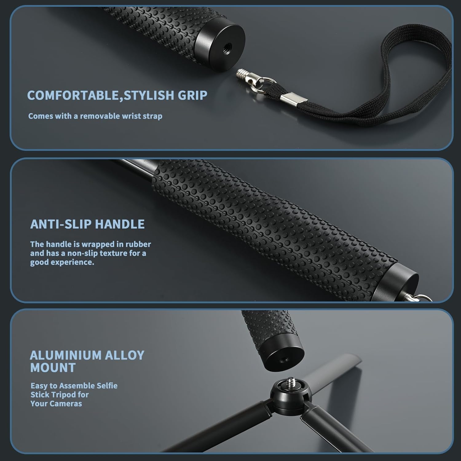 - ăVersatile Design for ExpansionăThe hand grip the bottom built with a standard 1/4'' tripod screw hole which allows you connect this stick with any tripod to free your hand while shooting, vlogging or taking a video.