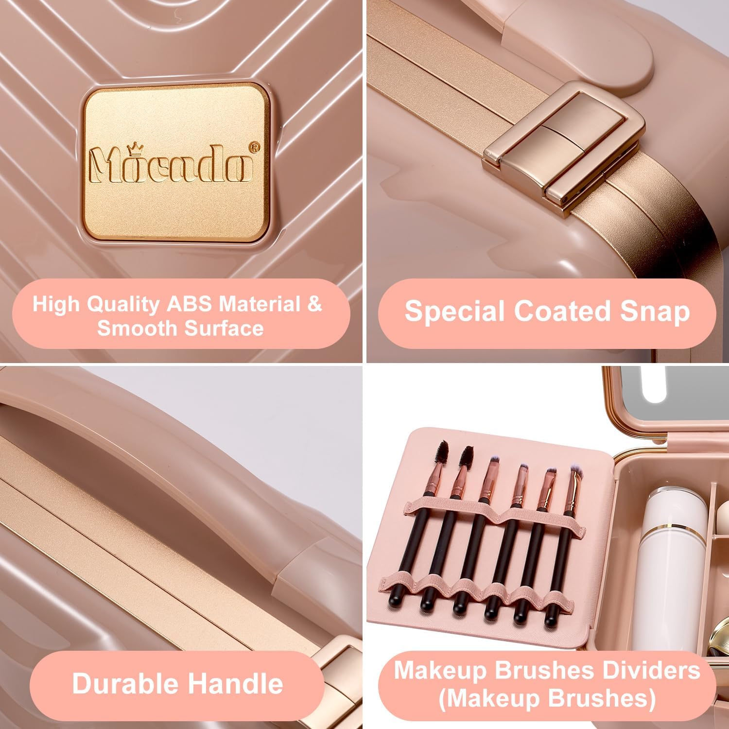 - 💄【Mocado Novel Design Makeup Case】Modern design combination of integrated make-up case and make-up mirror. Storage compartments designed according to commonly used cosmetics, folding dividers for 9 different makeup brushes, HD 6K makeup mirror with adjustable light. Thanks to the large-capacity storage space and compactness, it can meet the make-up needs of travelling or business trips, and is the best travel companion for beauty .