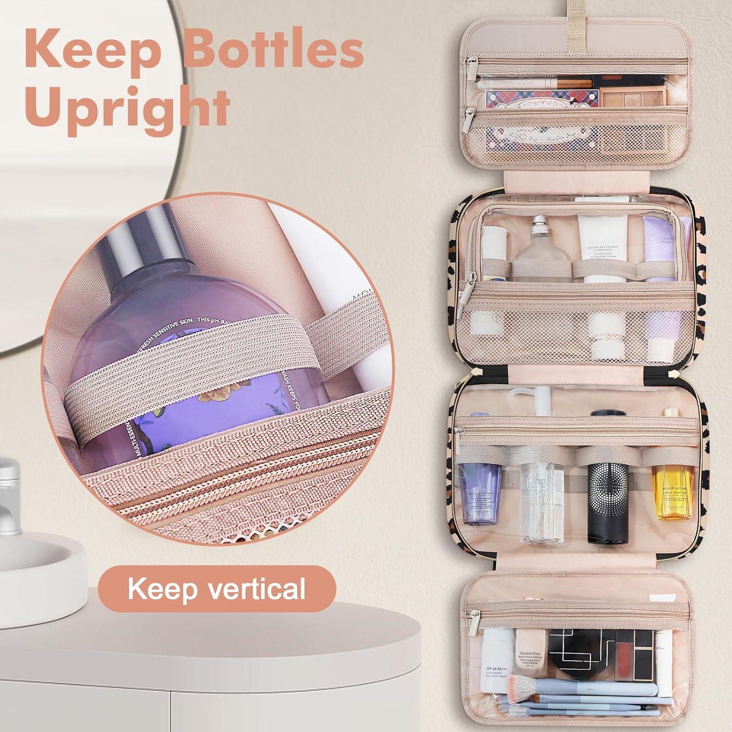 Wedama Toiletry Bag for Women, Medium Cosmetic Travel Bag, Hanging Toiletry Bag for Bathroom, PVC Waterproof Makeup Bag, Toiletries Bag for Travel Business Trips and Camping, Leopard Print