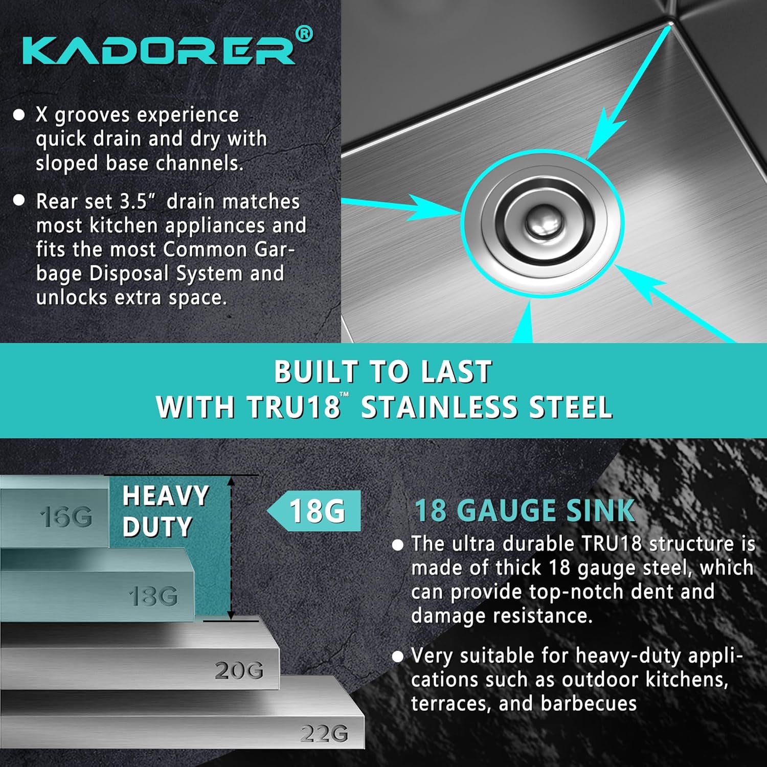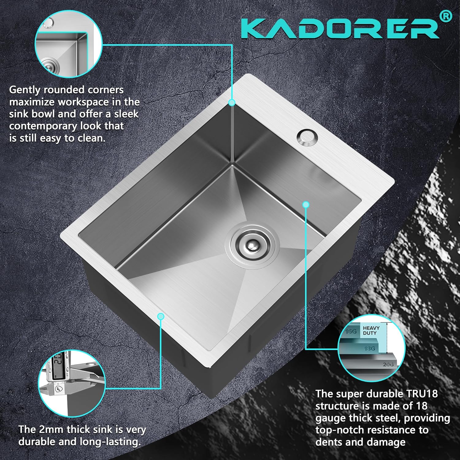 - X-SHAPED DESIGN: The 15x20 inch bar sink is designed with slopped bottom and X-shaped drain grooves that ensure draining water quickly and prevent water pooling,while maintaining an elegant appearance.