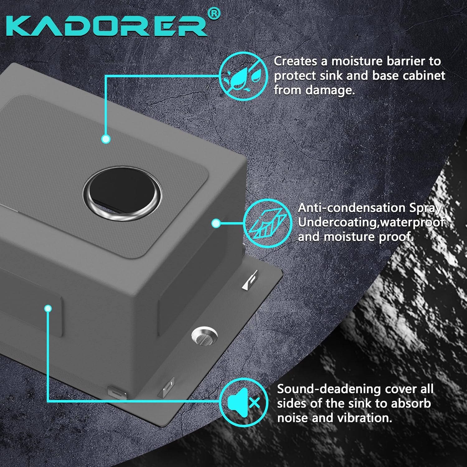 - SOUND BARRIER TECHNOLOGY: Drop in Kitchen Sink adds 3 Sound-proof Pads to the bottom of the sink to reduce the sound of running water. Undercoating condensation layer minimizes noise and reduces condensation to protect your cabinets and allow you to enjoy quiet cooking and washing time.
