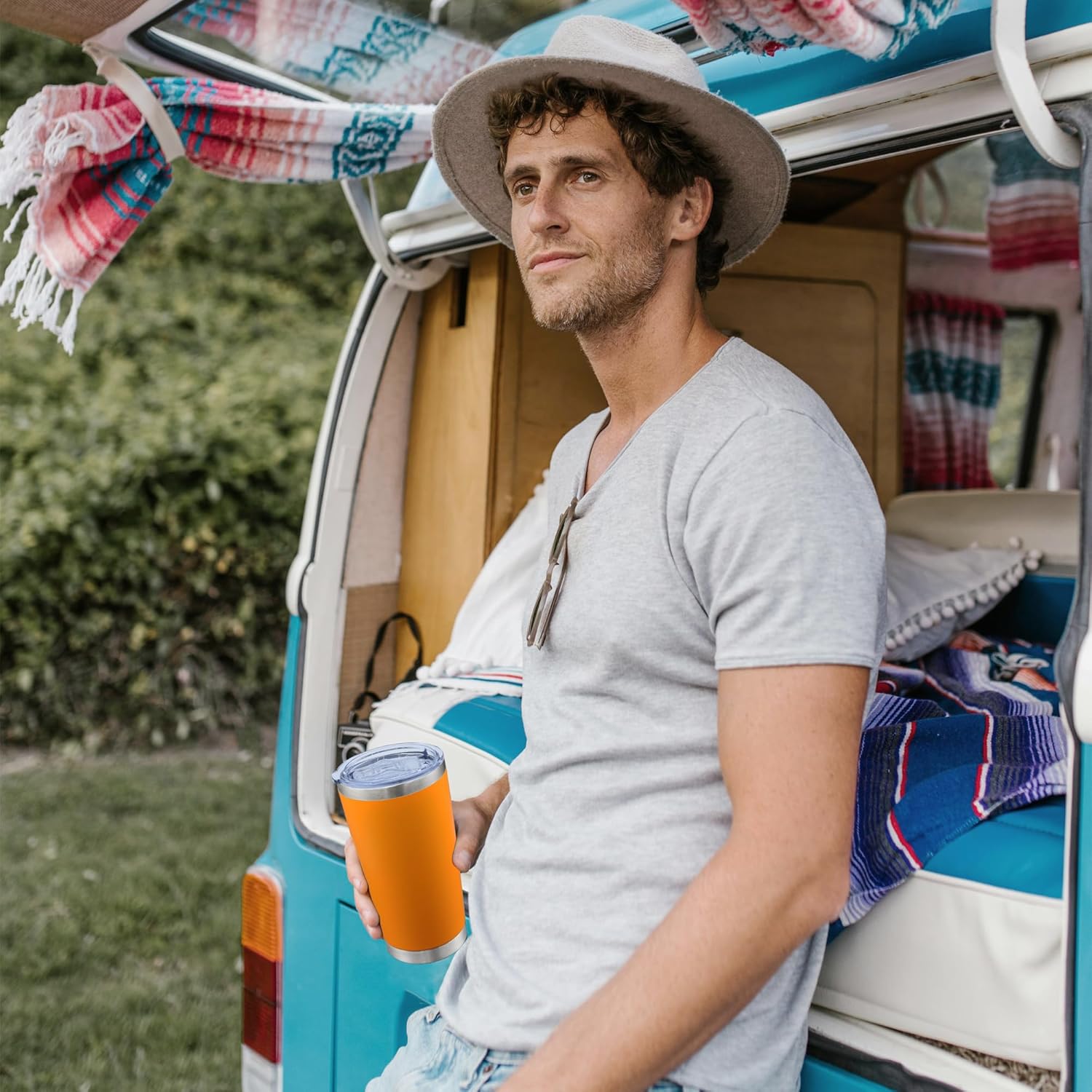 20oz Tumbler Bulk Stainless Steel Tumblers with Lid Vacuum Insulated Double Wall Travel Coffee Mug Powder Coated Tumbler Cup for Hot and Cold Drinks(Orange, 6 pack)