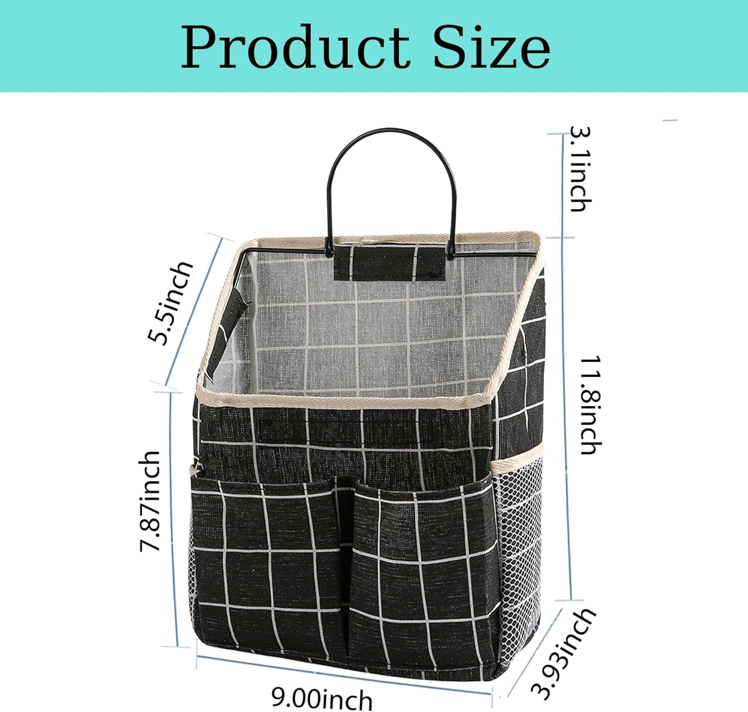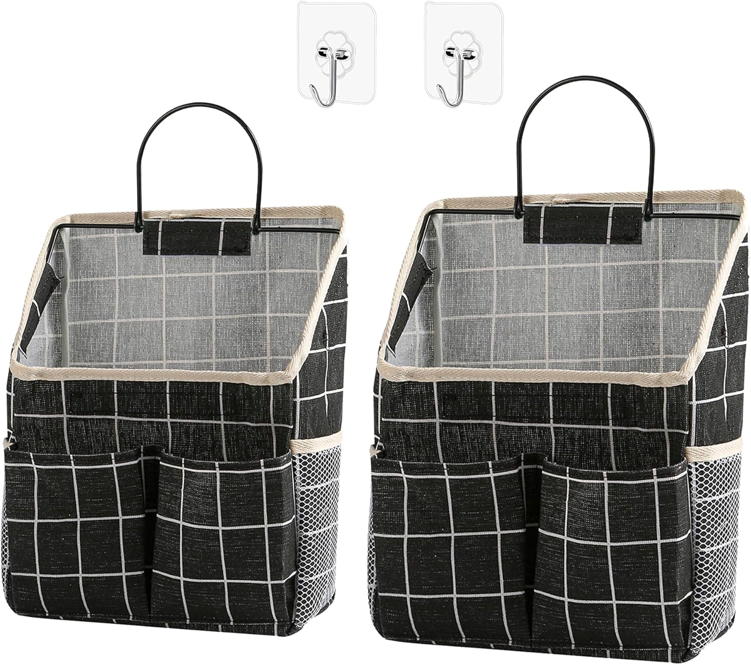 2pcs Wall Hanging Storage Bag,Wall Hanging Organizer Bags with Pockets, Wall Organizer Storage for Dormitory Bathroom Bedroom Kitchen(Black Grid)