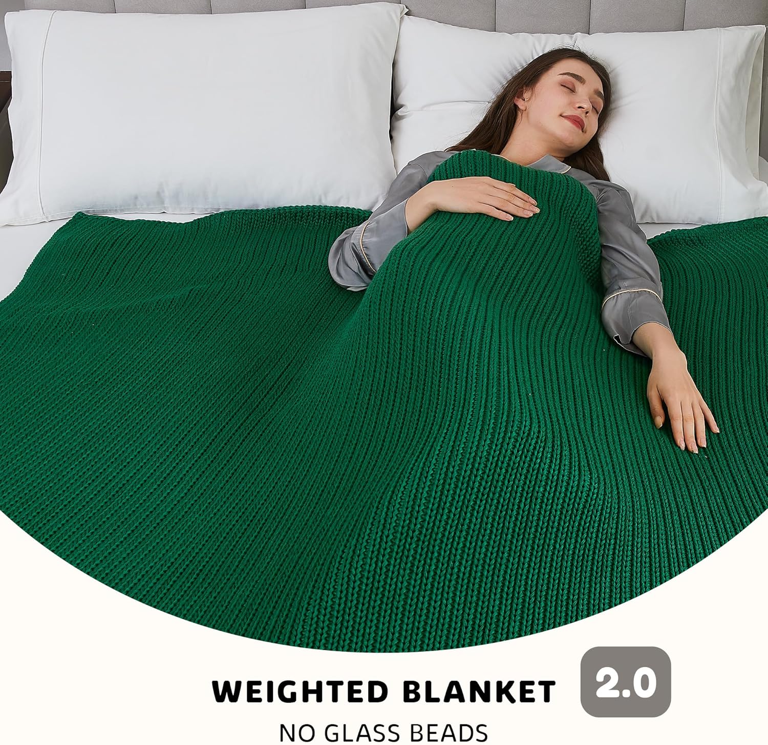 - MORE BREATHABLE: Knitted weighted blankets are more breathable because there are many small knitted holes on the surface of the blanket through which air can circulate directly. You can enjoy the same weighted feeling while staying dry and comfortable