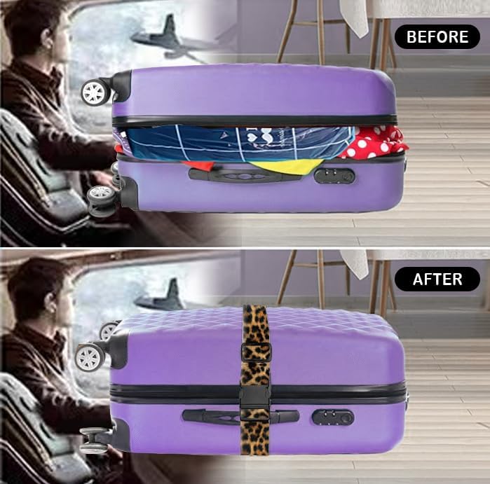 Luggage Straps for Suitcases Travel Belt Accessories, Cute Suitcase Strap, Adjustable Luggage Belt Strap, Heavy Duty with Quick-Release Buckle Luggage Strap Luxury Brown Leopard