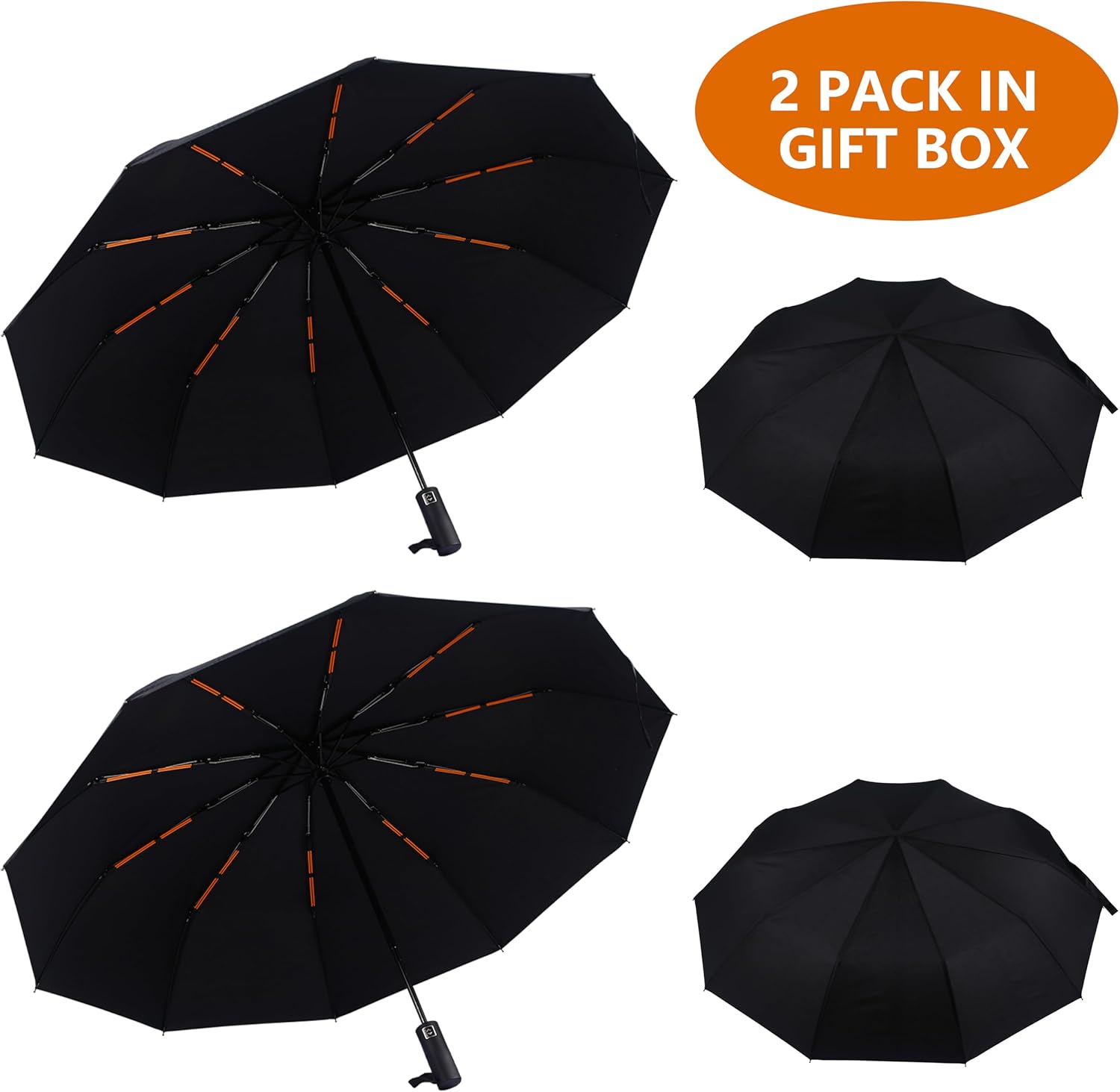 Double 10-Rib 46 Inch Compact Travel Umbrella for Rain - Sturdy Portable Windproof Umbrella - Small Automatic Folding Umbrella