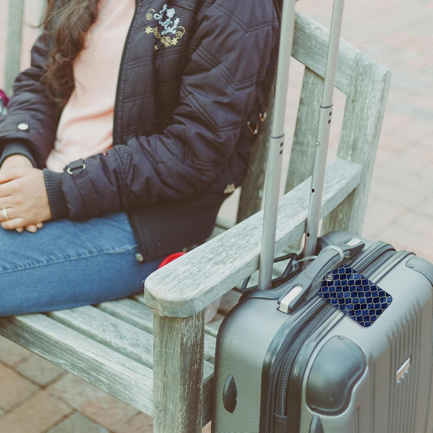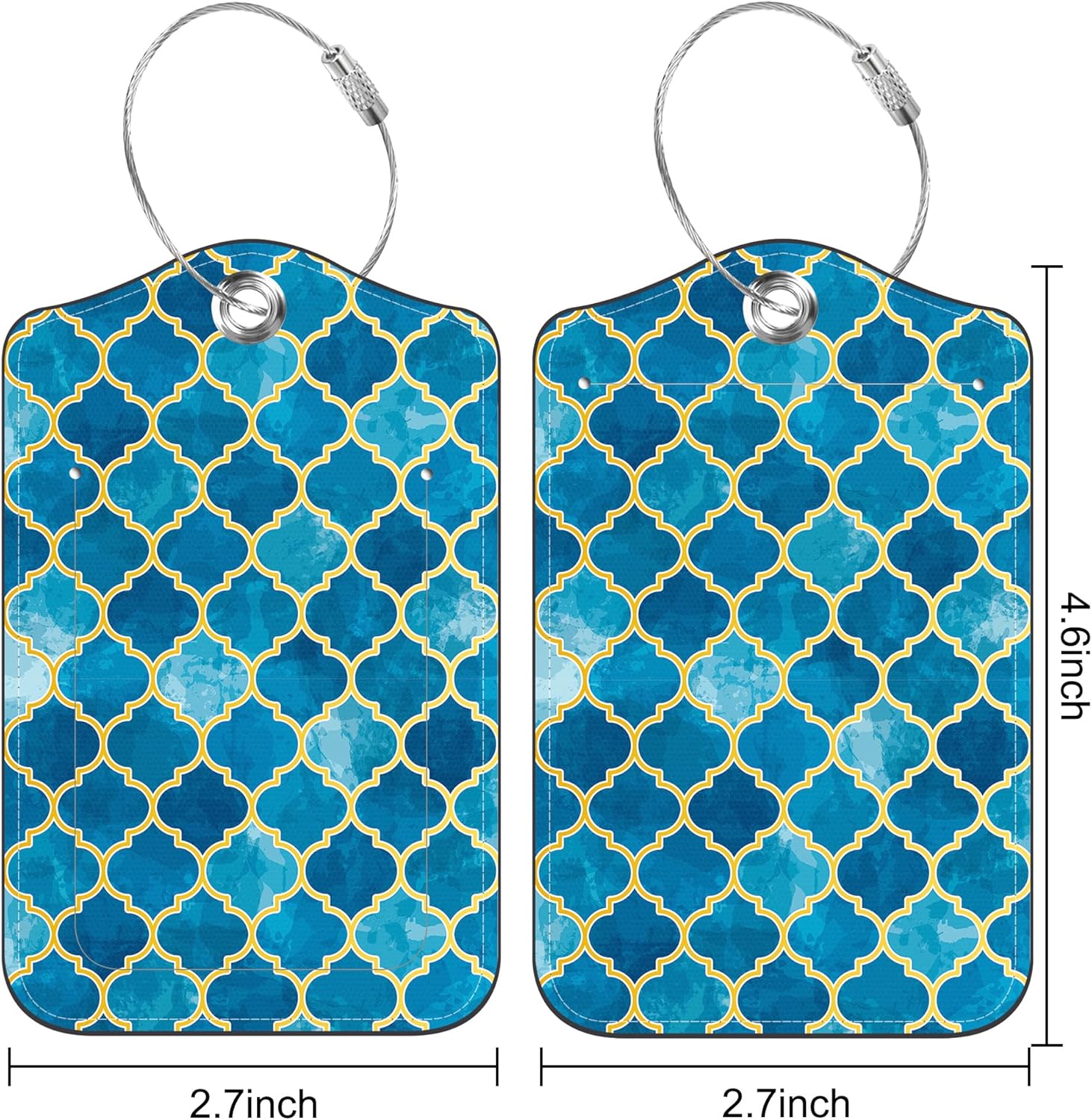- Set of 2 Luggage Tags: This Arabic Mosaic and Mosque Window Shape luggage tag come in sets of 2, each Suitcases Tag measures 4.6 x 2.7 inches, this Baggage Tag is made of high-quality leather, soft and durable, easy to carry, will not scratch your luggage