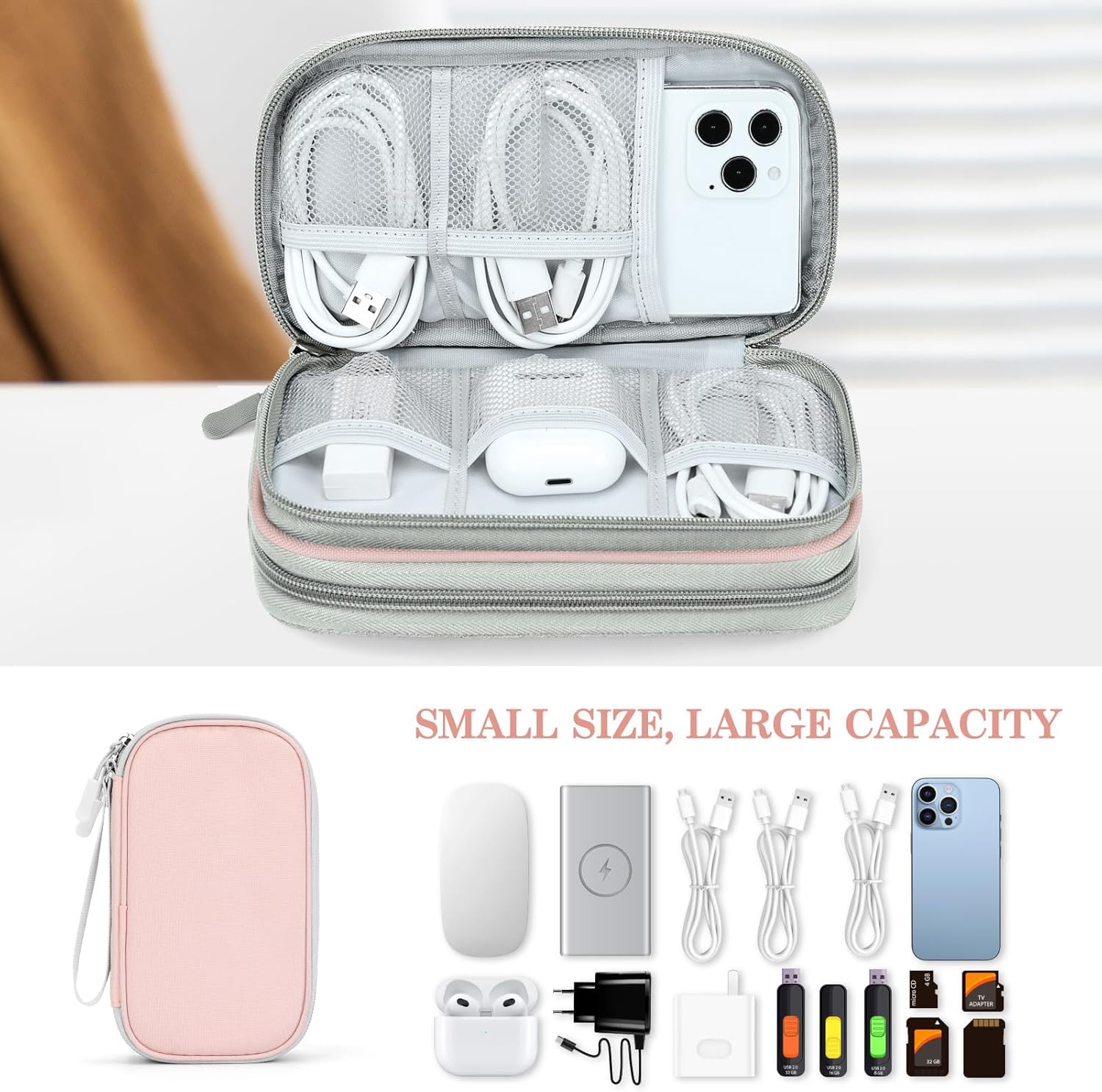 FYY Electronic Organizer, Travel Cable Organizer Bag Pouch Electronic Accessories Carry Case Portable Waterproof Double Layers All-in-One Storage Bag for Cable, Cord, Phone, Earphone-Light Pink