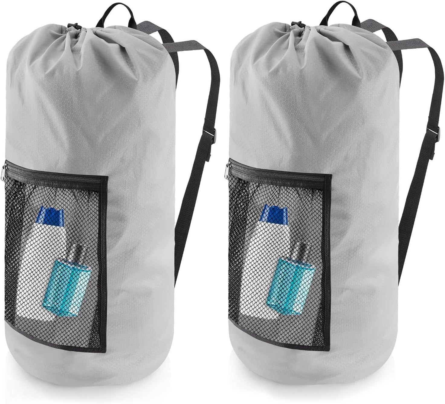 Laundry Bag Backpack, 2PCS Extra Large Travel Laundry Bag with Mesh Pocket & Adjustable Shoulder Straps,Dirty Clothes Travel Bag for College Students Dorm,Apartment(Light Gray)