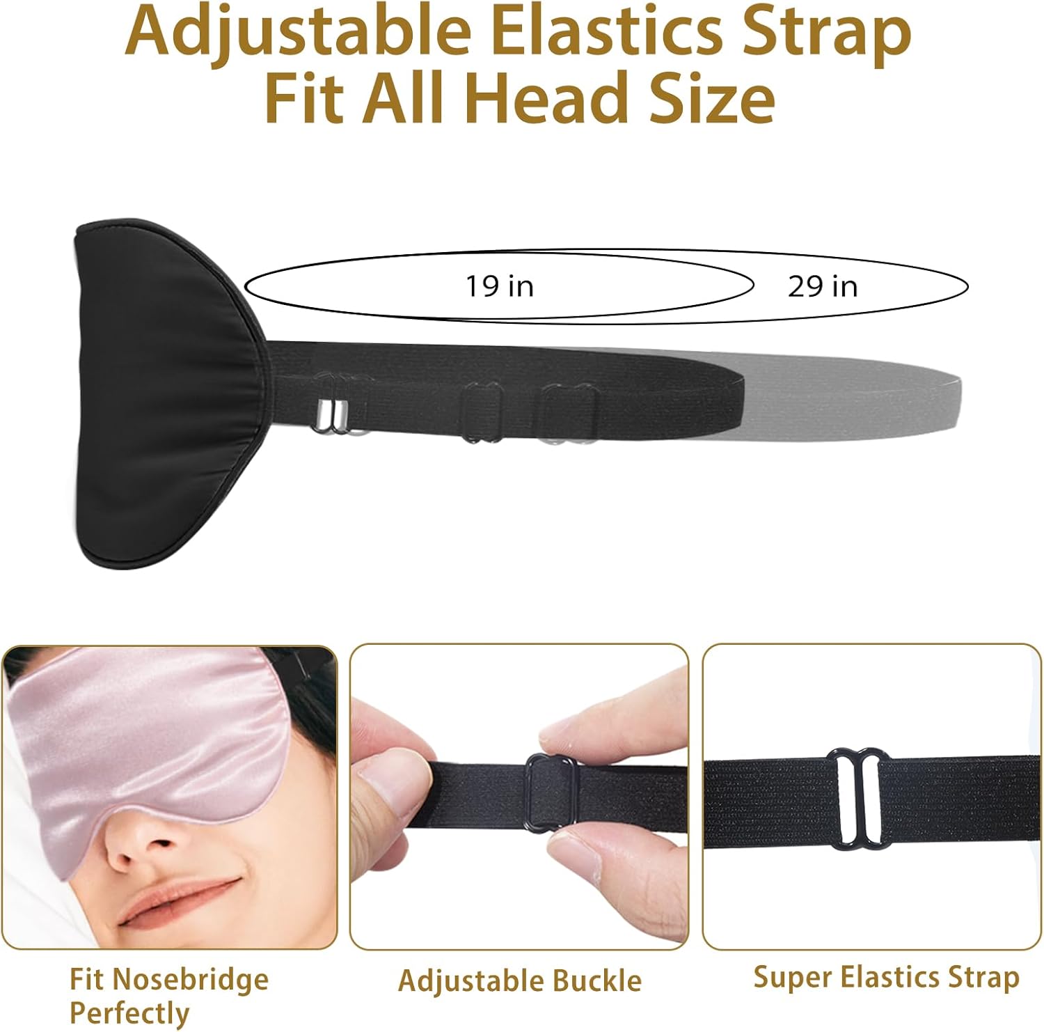 - Adjustable Elastic Strap - Fits All Head Sizes: Designed with adjustable straps to fit all head sizes, this sleep mask stays securely in place all night longâno more tangled hair or slipping. Find your perfect sleeping position effortlessly, and enjoy uninterrupted comfort night.