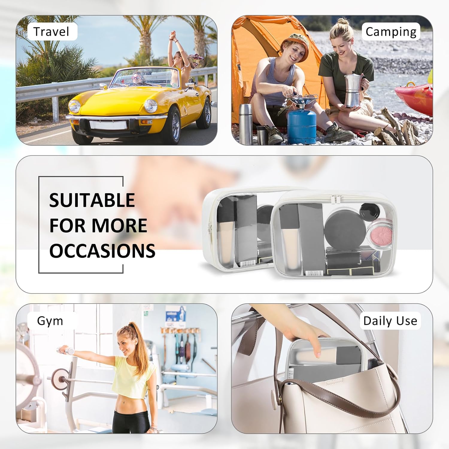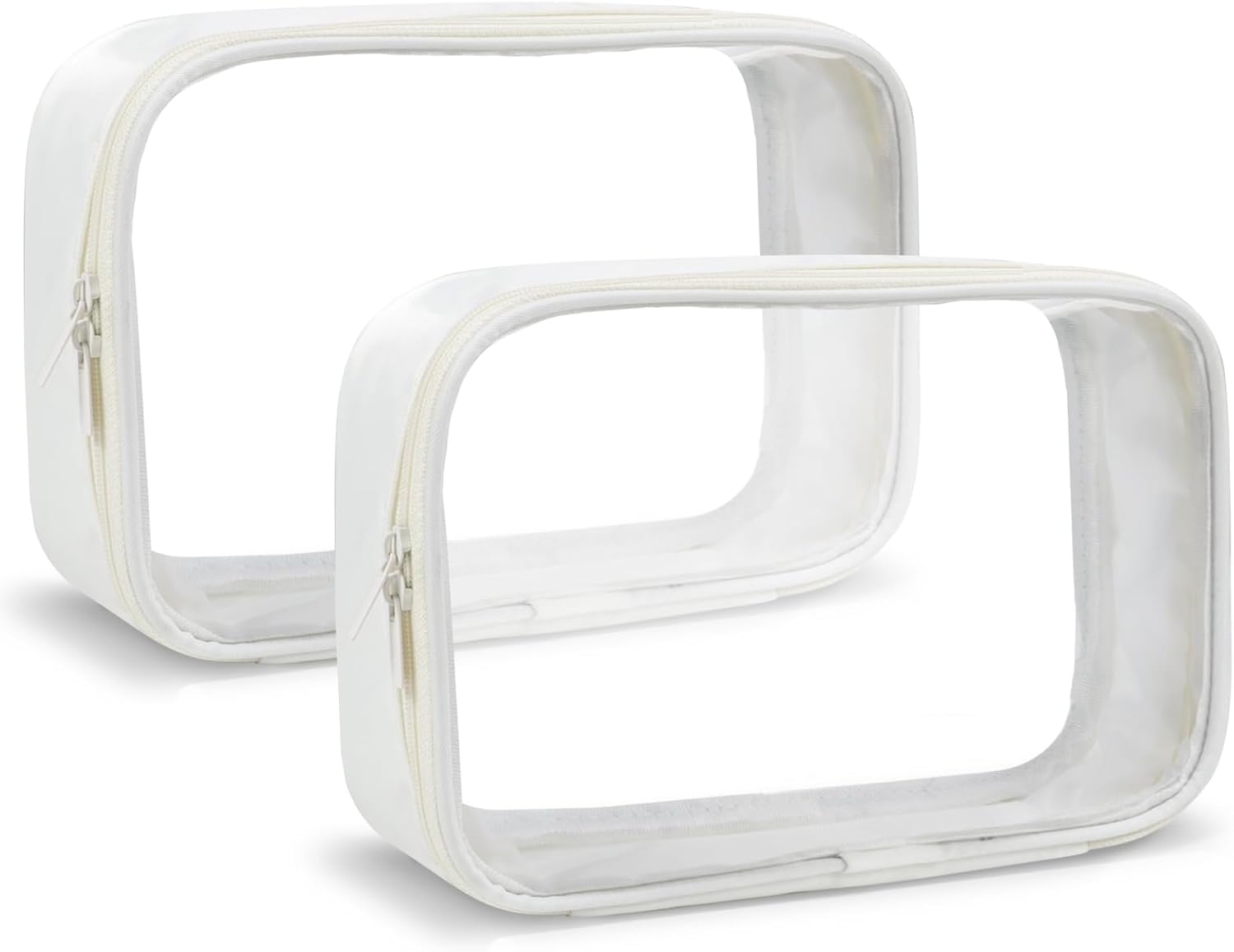 Moyad TSA Approved Clear Toiletry Bag, 2 Pack Quart Size 3-1-1 Liquids Pouch for Travel, Transparent Makeup & Cosmetic Organizer for Women Men, Beige