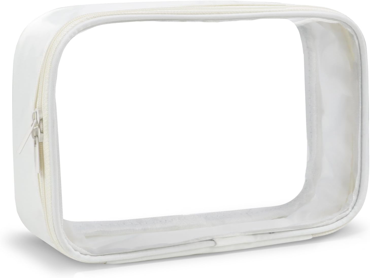 Moyad TSA Approved Clear Toiletry Bag, 1 Pack Quart Size 3-1-1 Liquids Pouch for Travel, Transparent Makeup & Cosmetic Organizer for Women Men, Beige