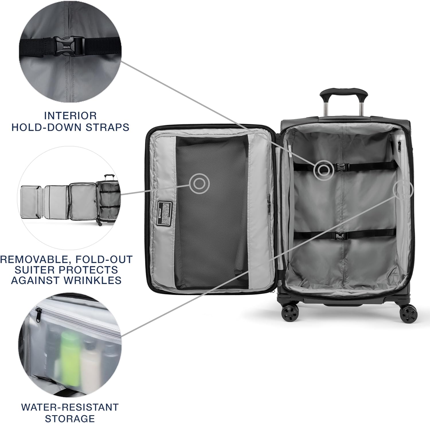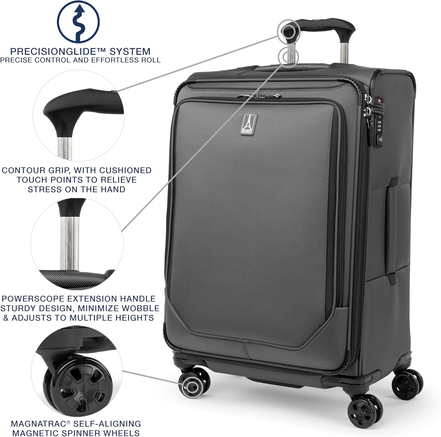 Travelpro Crew Classic Lightweight Softside Expandable Checked Luggage, 8 Wheel Spinner Suitcase, TSA Lock, Men and Women, Checked Medium 25-Inch, Titanium Grey
