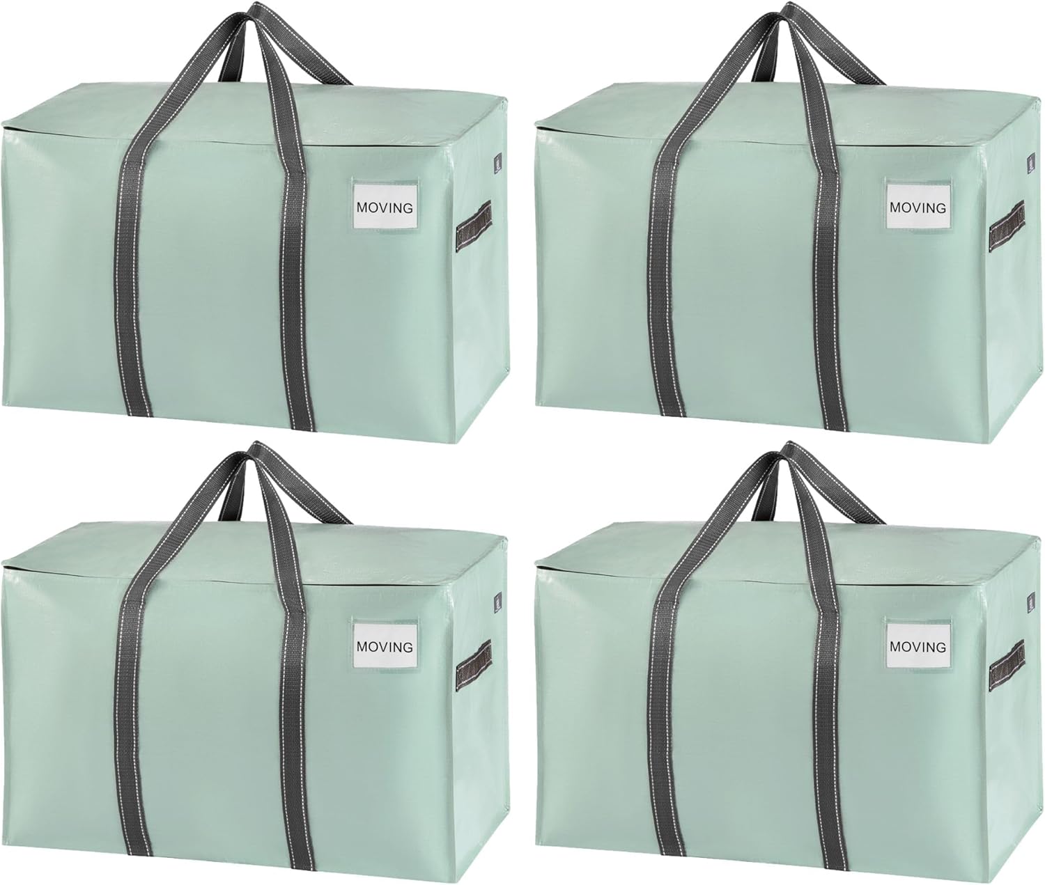 VENO 4 Pack Moving Bags, Heavy Duty, Moving Boxes Alternative, Packing Storage Supplies for Dorm Room Essentials with Zipper for Clothes, Extra Large Totes for Packaging (Shiny Light Green, 4 Pack)