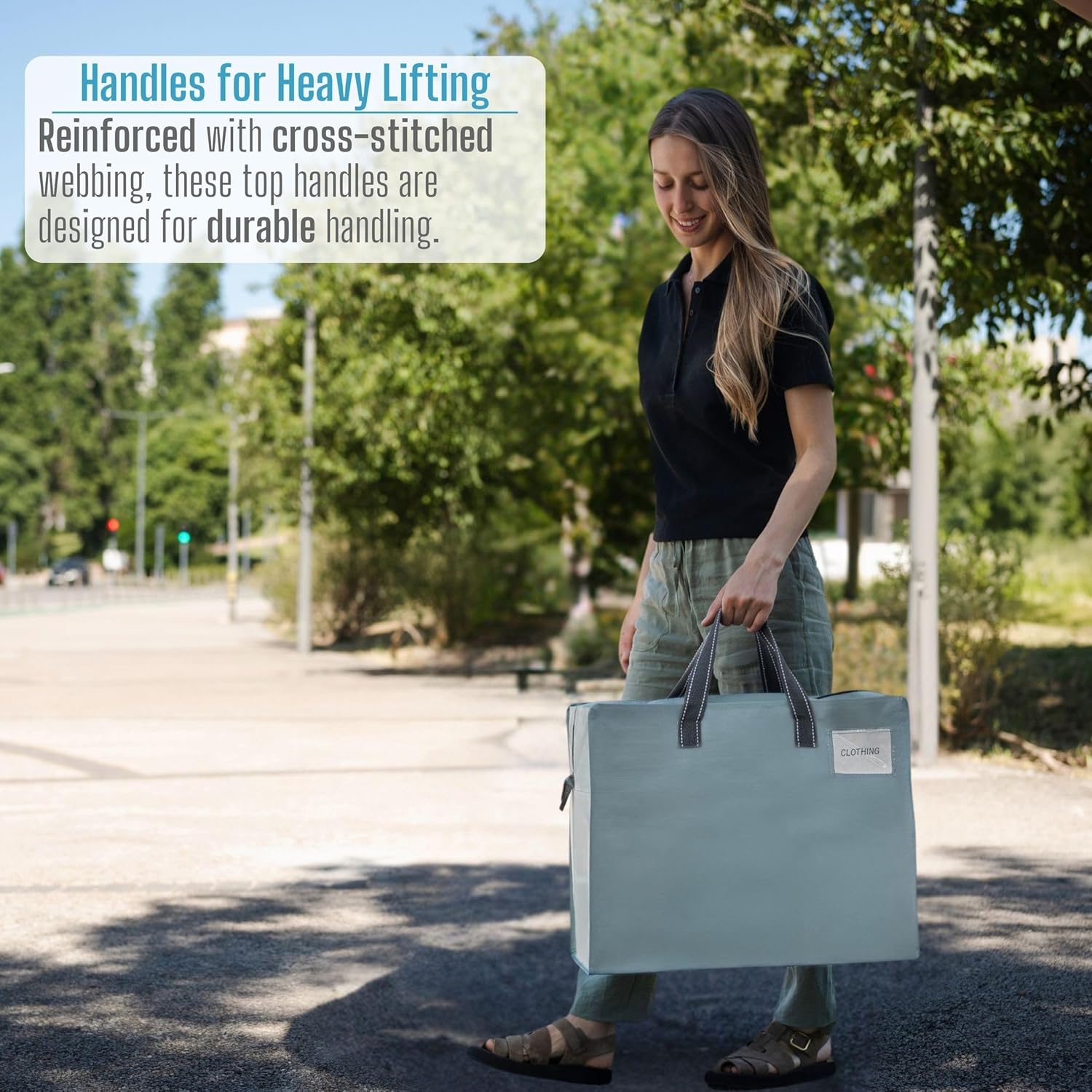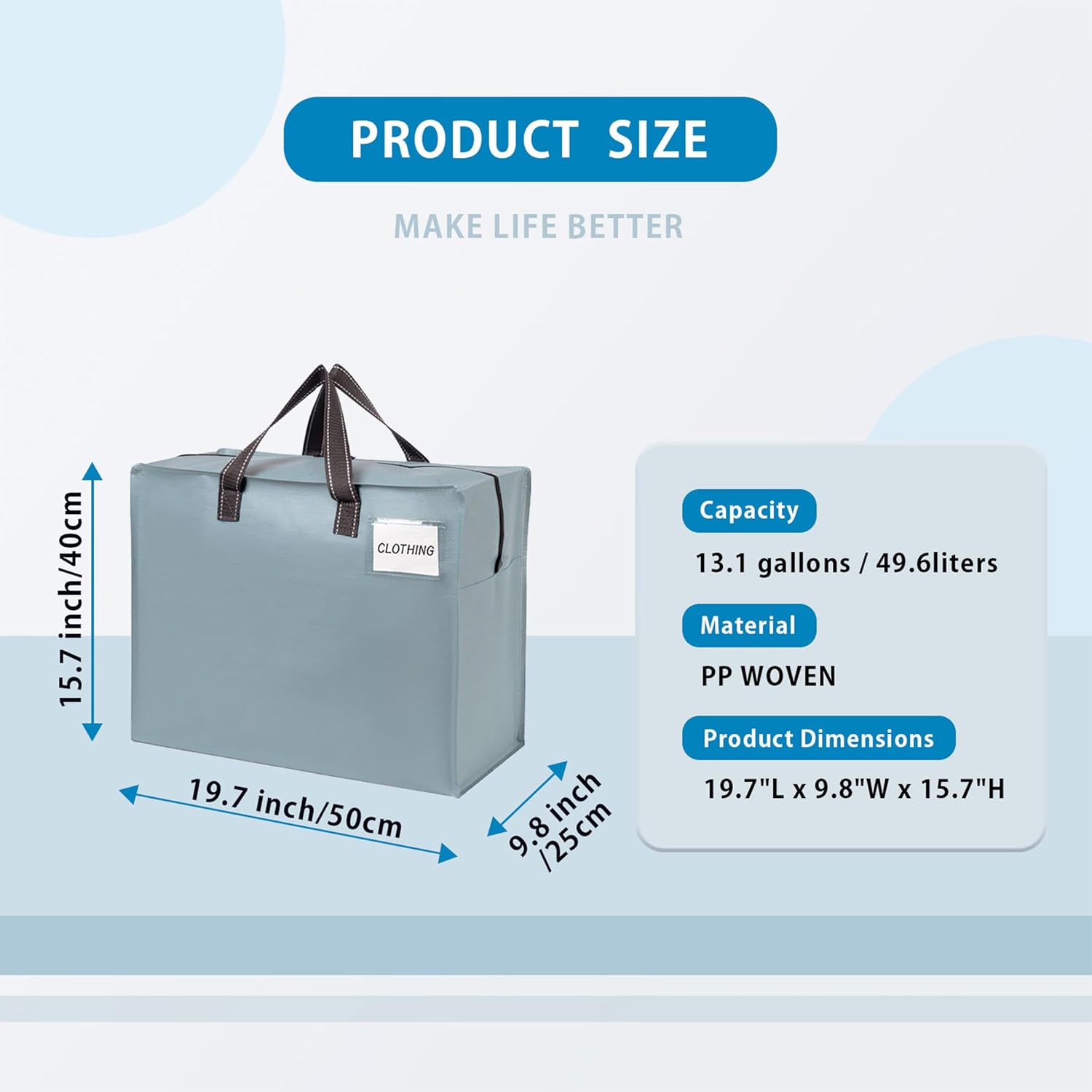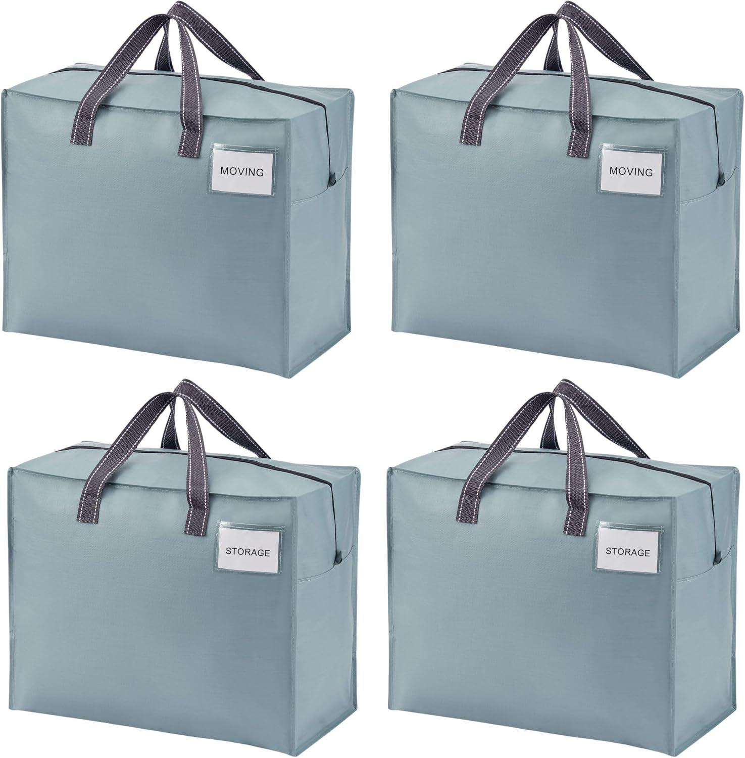 VENO 4 Pack Heavy Duty Moving Bags, Storage Bags, Packing Supplies, Top Zipper, Storage Totes for Camping, Clothes, Bedding, Comforters, Pillows (13 Gallon Light Blue, 4 Pack)