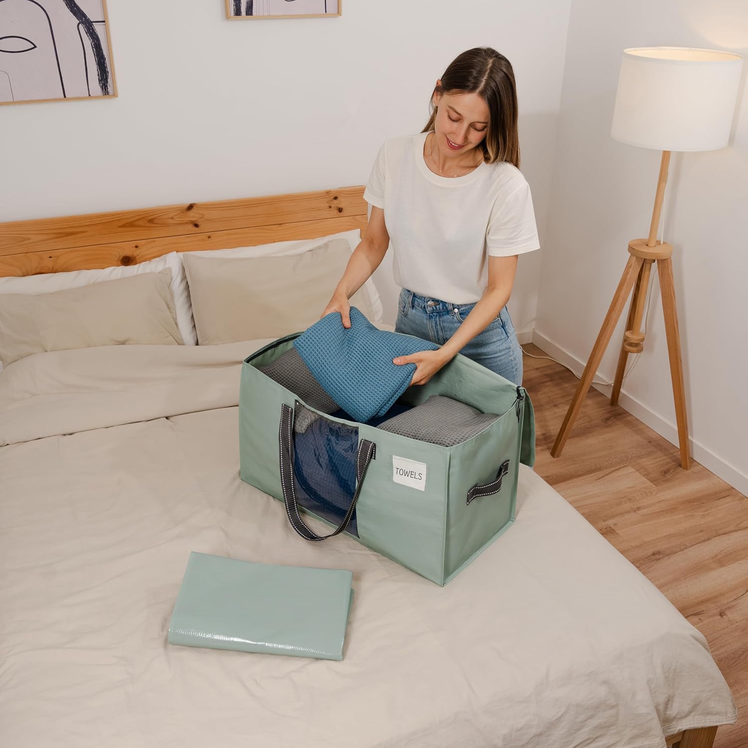 - Instant Identification โ Say goodbye to the frustration of searching for your belongings. With a large transparent window panel, this bag streamlines sorting and allows for quick recognition of belongings. The clear tag pocket facilitates the organization of essentials such as down comforters, pillows, and clothes. Simply create a custom label and slot it in.Remember to use this labeling feature for organizing college dorm room essentials, moving to a new home, or storing items in the garage.