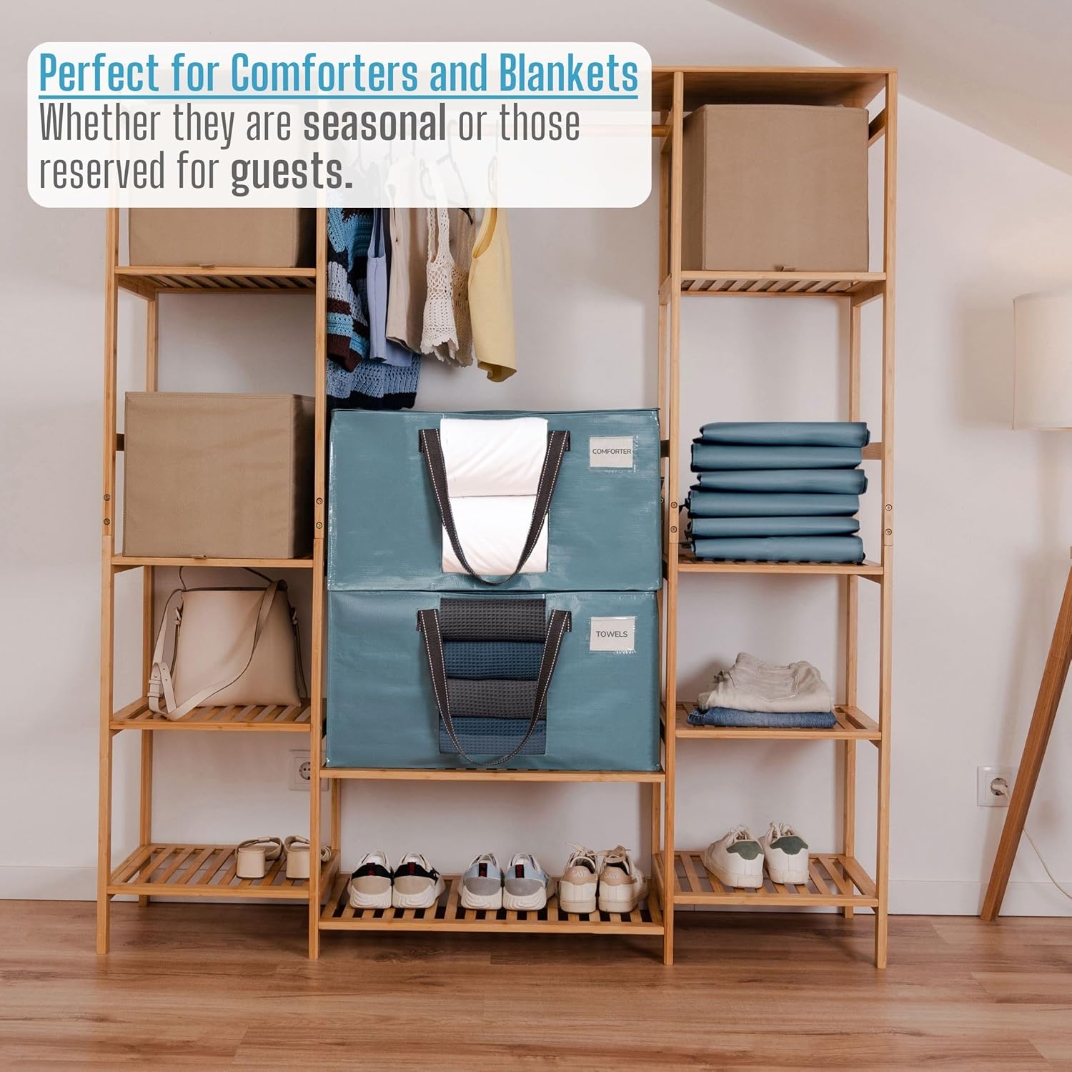 VENO 8 Pack Moving Bags, Comforter and Blanket Storage Bags for Closet, Moving Boxes, Boxes with Lids Alternative, College Dorm Packing Supplies, Foldable Heavy-Duty Tote (Shiny Light Blue, 8 Pack)