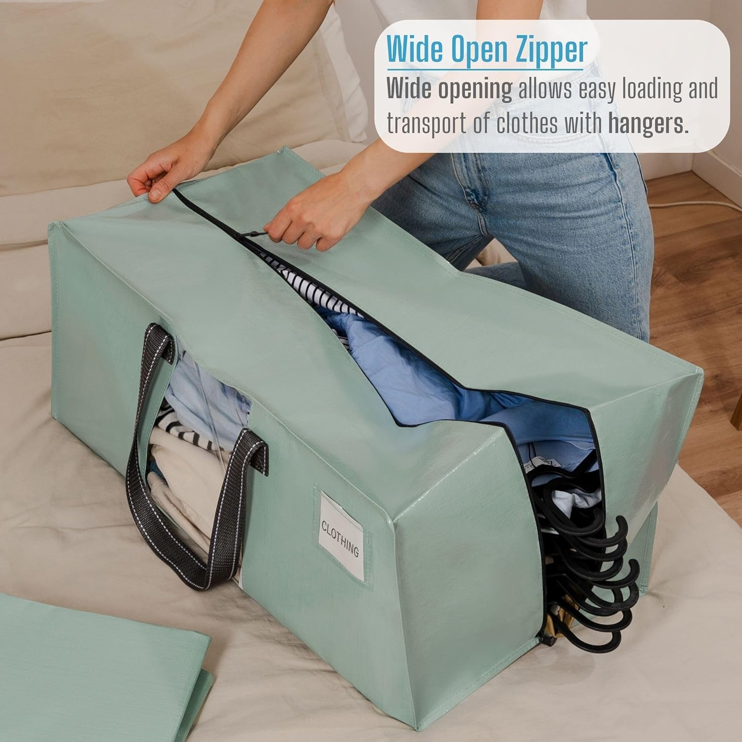 VENO 6 Pack Moving Bags for College, Heavy-Duty Storage Totes, Moving Boxes and Wardrobe Packing Supplies Alternative - Extra Large Durable Laundry Bags for Clothes (Shiny Light Green, 6 Pack)
