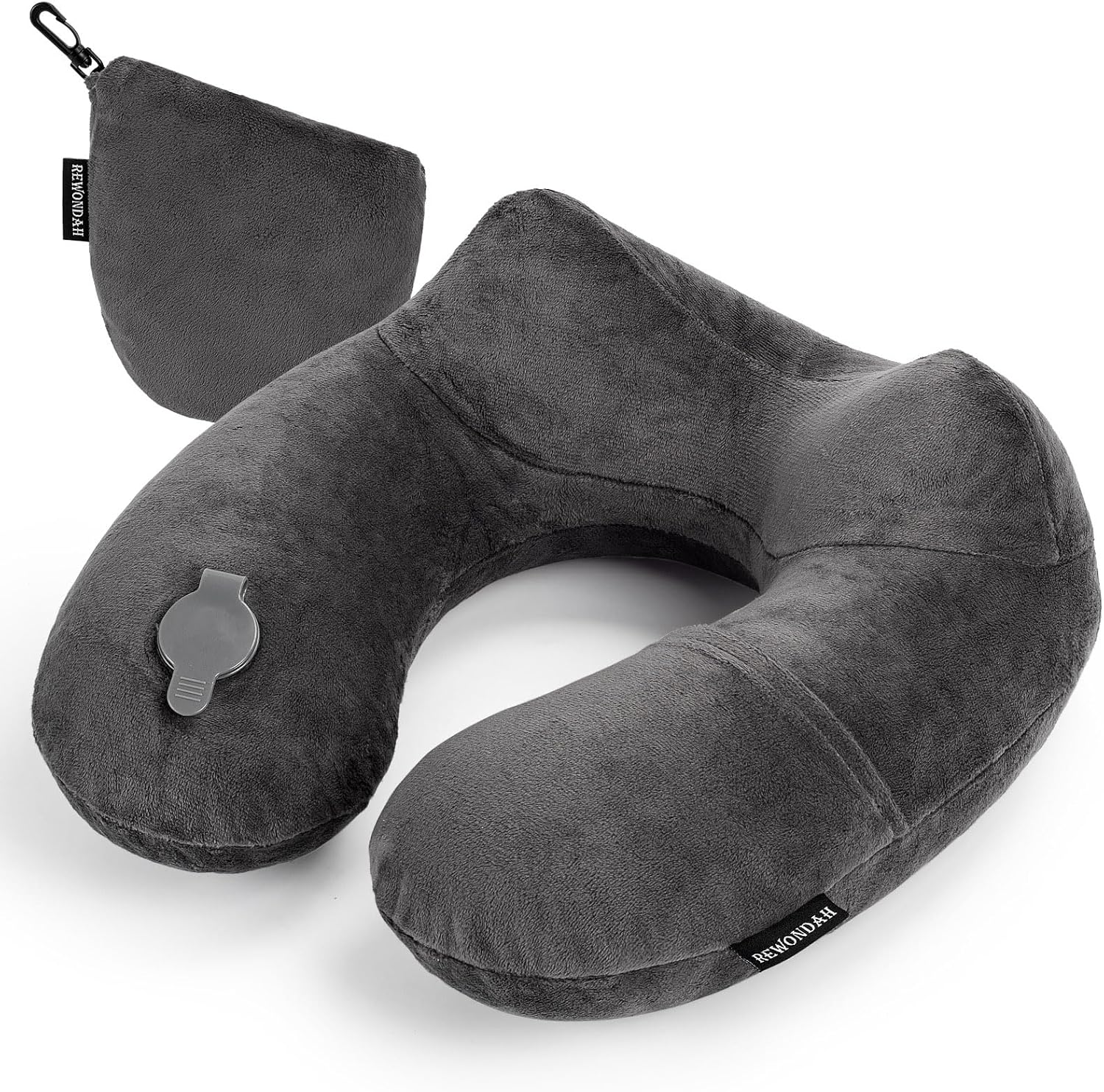 Rewondah Inflatable Travel Pillow for Sleeping Airplane - Inflatable Neck Pillow for Traveling on Plane with Washable Cover, Blow up Neck Travel Pillow for Airplanes, Cars - Portable and Comfortable