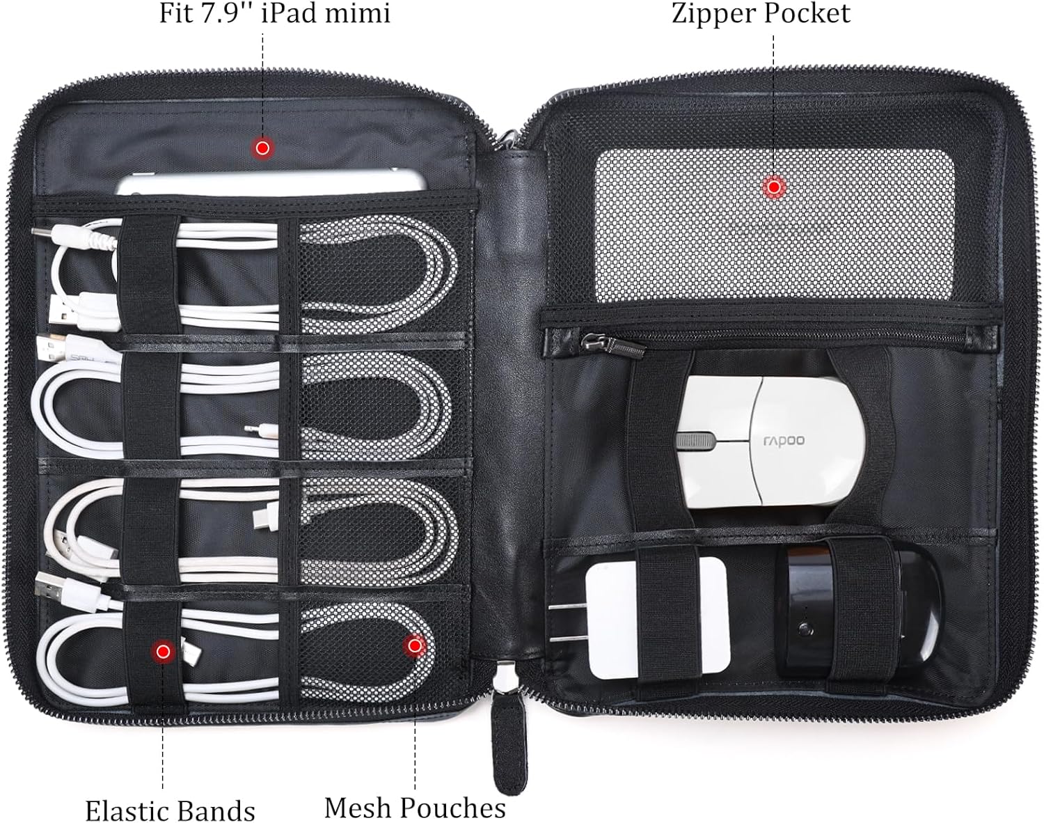 - ✔ Keep Everything Organized - Elastic bands, mesh pouches and zipper pocket can be used to hold the mouse, chargers, mobile power supply and various cables. 1 iPad pocket with well padded to protect your 7.9’’ iPad Mini. Keep all electronics accessories in one place and prevent cables from getting entangled. Say goodbye to chaos and make life simpler and better.