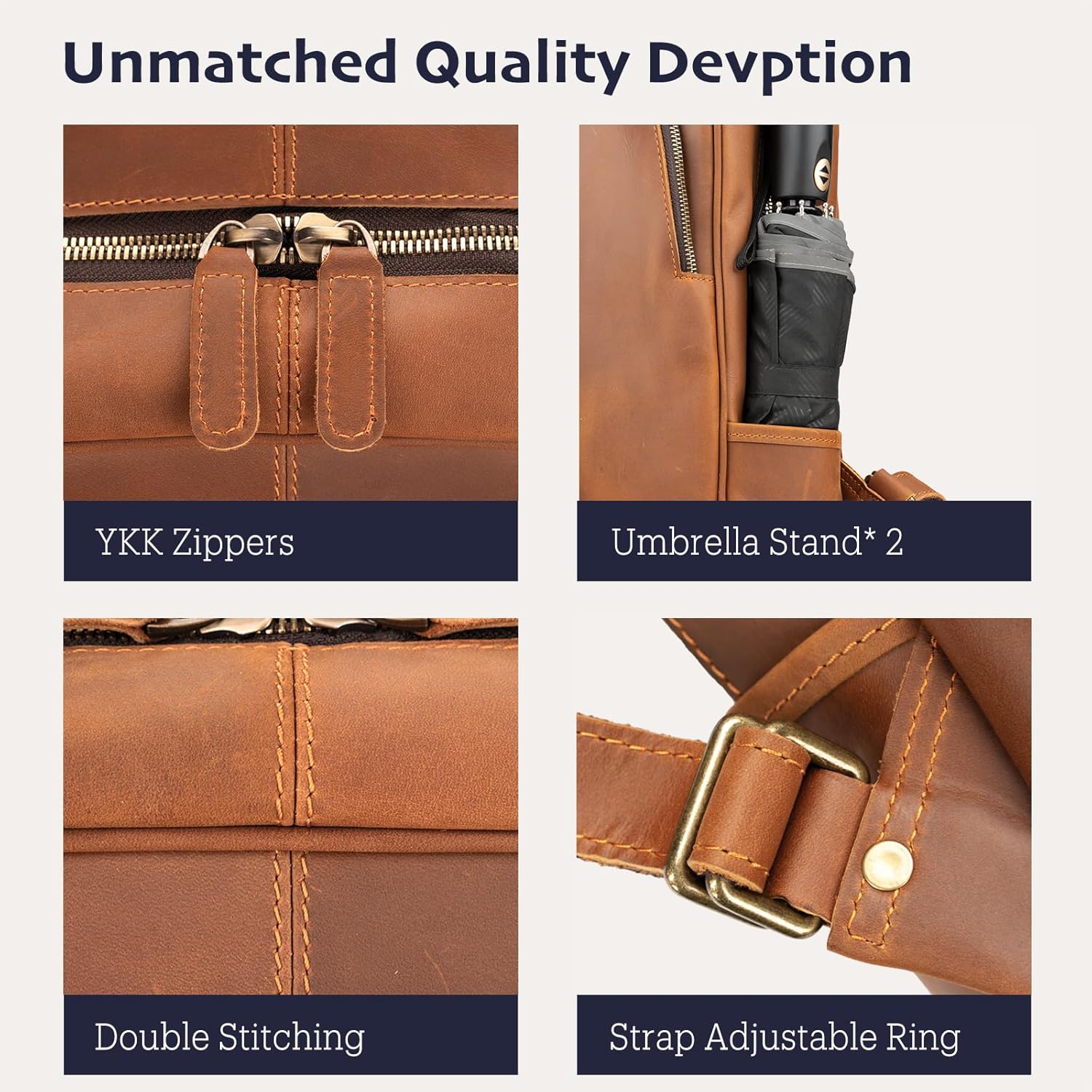 Leather Backpack for Men 15.6" Laptop Backpack 100% Madagascar top-Grain Leather Backpack Light Brown Medium Size