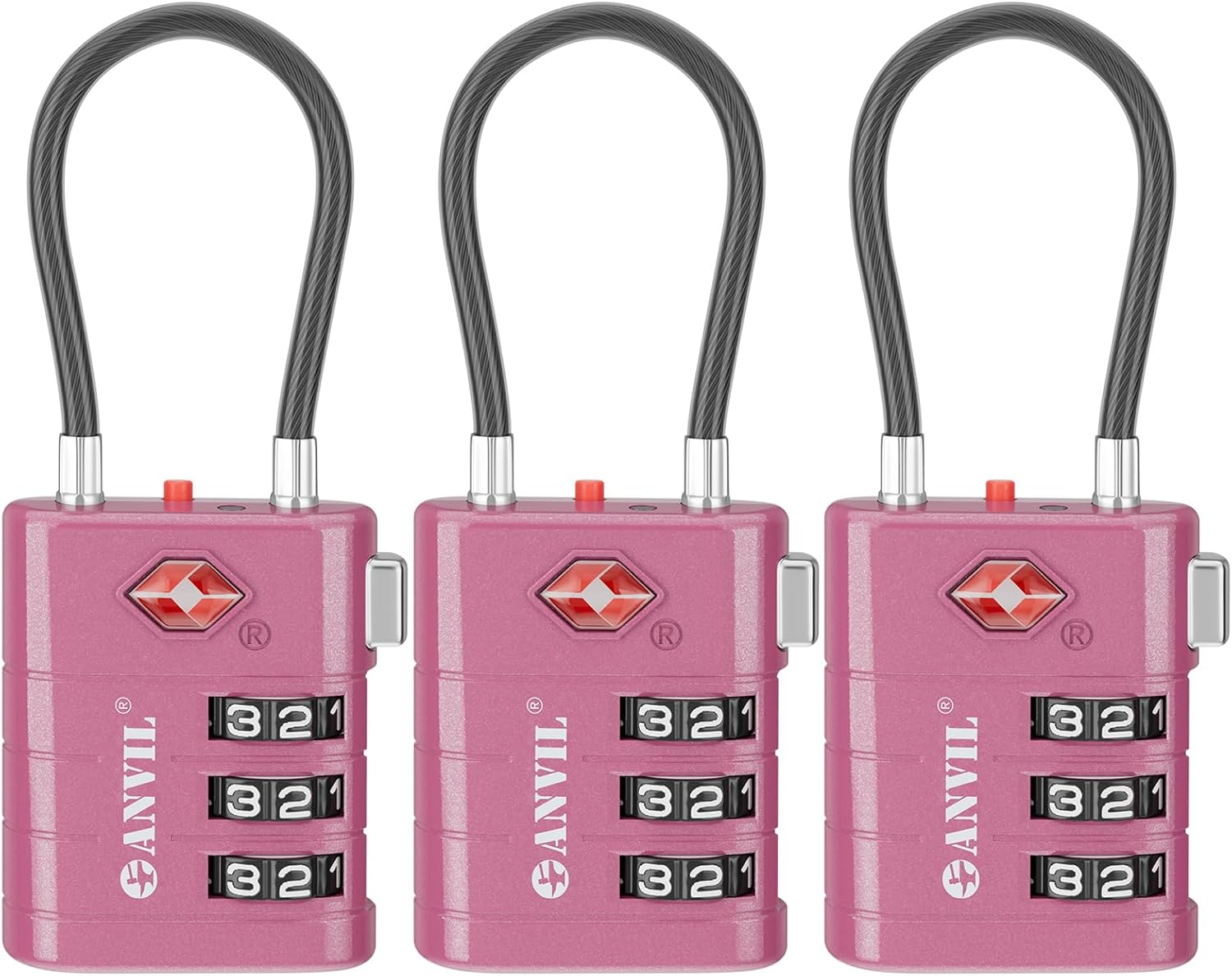 ANVIL TSA Approved Luggage Locks – High Security TSA008 Combination Travel Locks with Inspection Indicator for Suitcases and Backpacks. (3, Rose Purple)