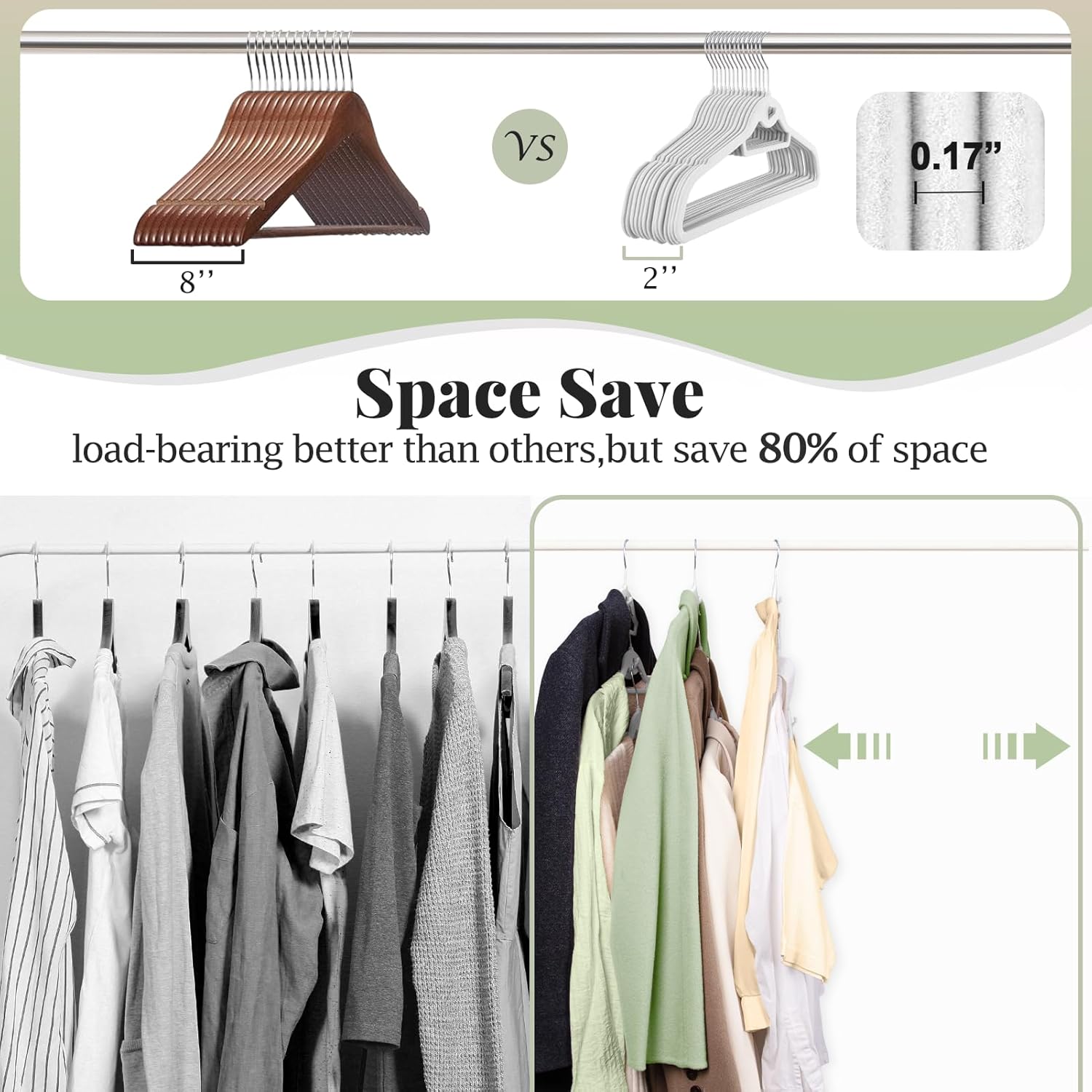 - 【Handle up to 15 pounds】- Our clothing hangers have zinc-coated metal hooks that can rotate 360 degrees, rustproof and durable, and can handle up to 15 pounds. So, whether you're hanging bulky winter coats or suits for men, it's super easy and convenient. No more worries about coat hangers buckling under the weight!
