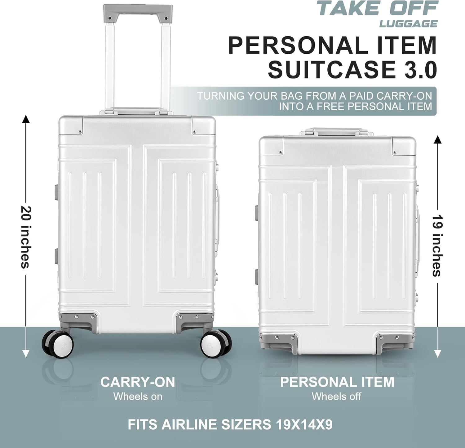 All Aluminum 20'' Luggage with Removable Spinner Wheels,Provide Spare Wheels.Carry on Luggage 22 x 14 x 9 Airline Approved Lightweight Metal Hard Shell Zipperless Suitcase