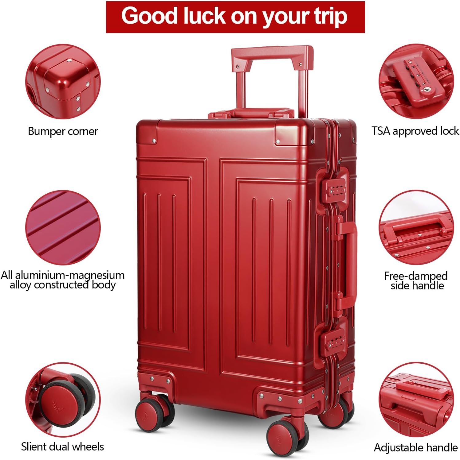 All Aluminum Carry On Luggage,Cut from Whole Aluminum Sheet,22x14x9 Airline Approved ,(3rd Generation,Premium All metal zipperless suitcase ) (red, 20inch)