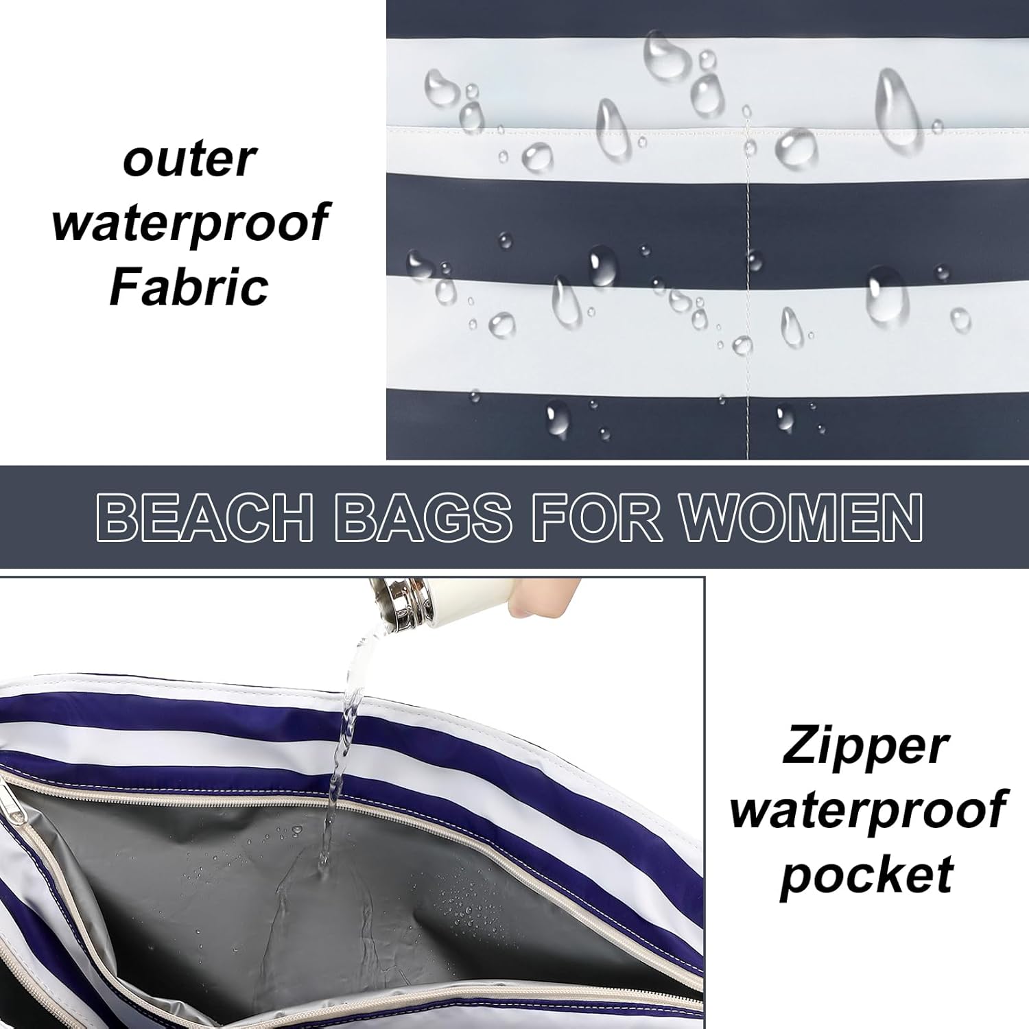 LEDAOU Beach Bag Waterproof Sandproof Women Tote Bag Pool Bag with Zipper for Gym Grocery Travel with Wet Pocket