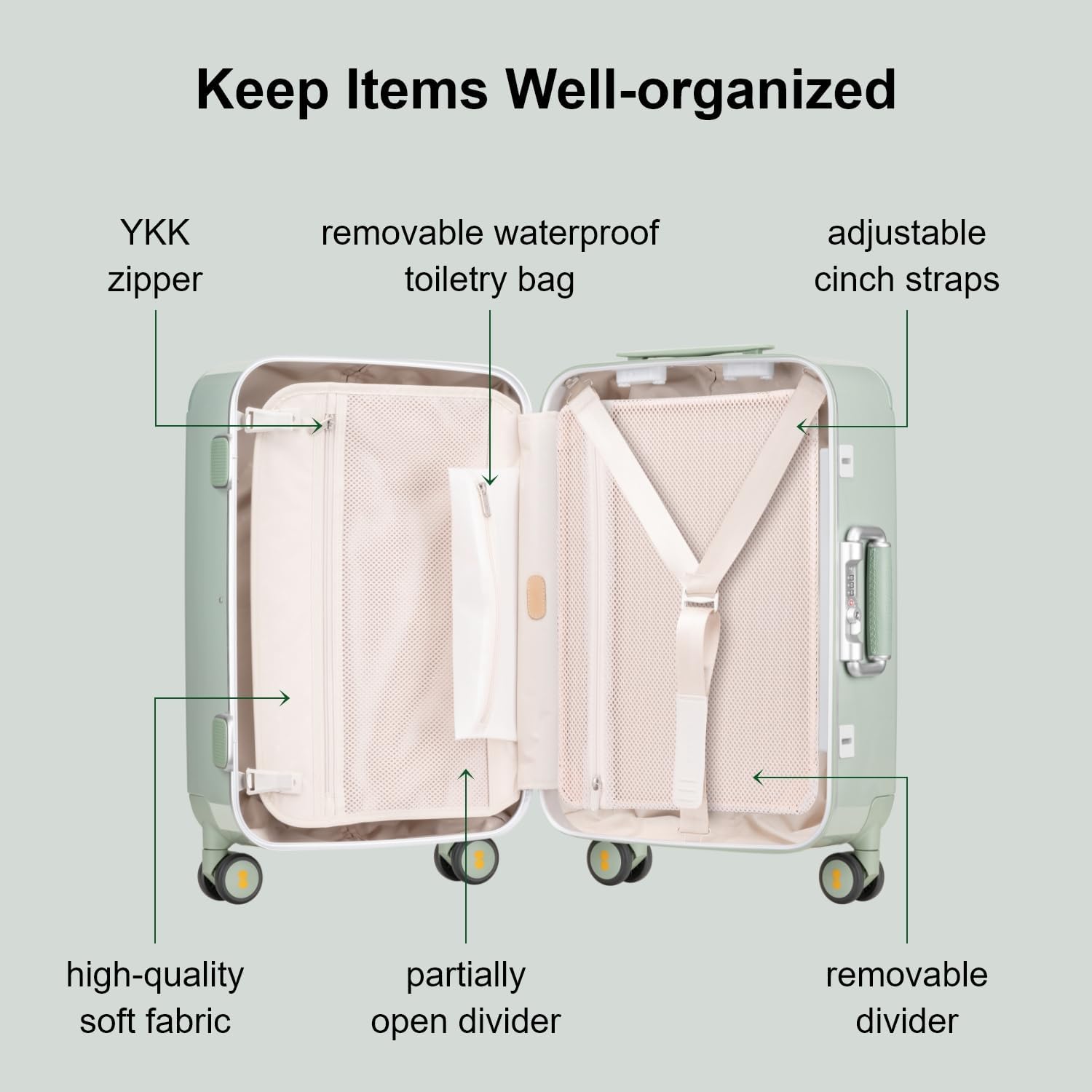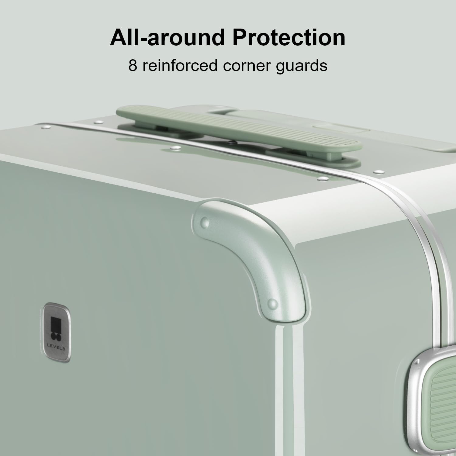 LEVEL8 Zipperless Carry On Luggage Airline Approved with Aluminum Frame, Cute Hardside Suitcase with Spinner Wheels, Metal Rolling Travel Case with Tsa Locks, 20 Inch, Light Green