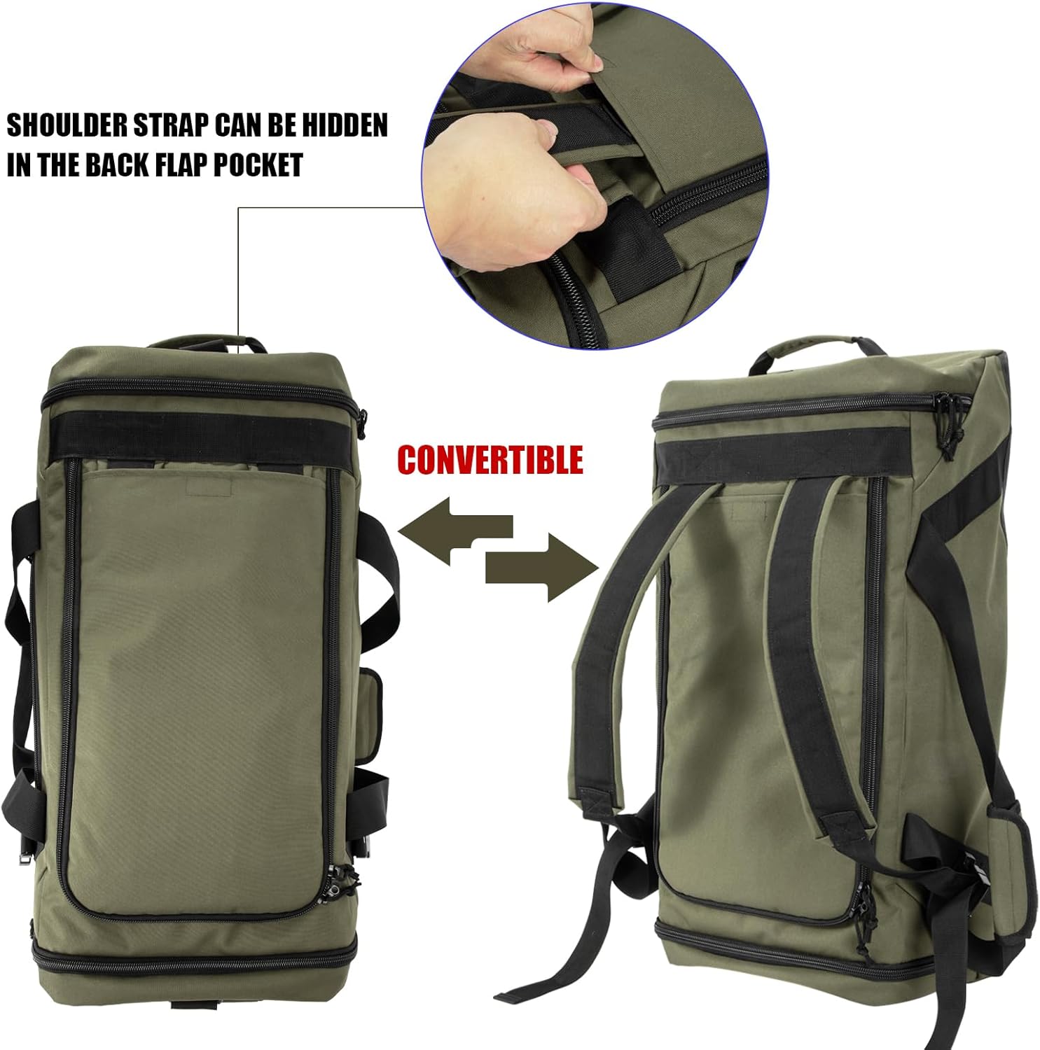 - Fabric: large tactical duffle bag is made of encrypted 600D high quality polyester with PVC waterproof backing treatment. Sturdy and durable is our primary consideration indicator