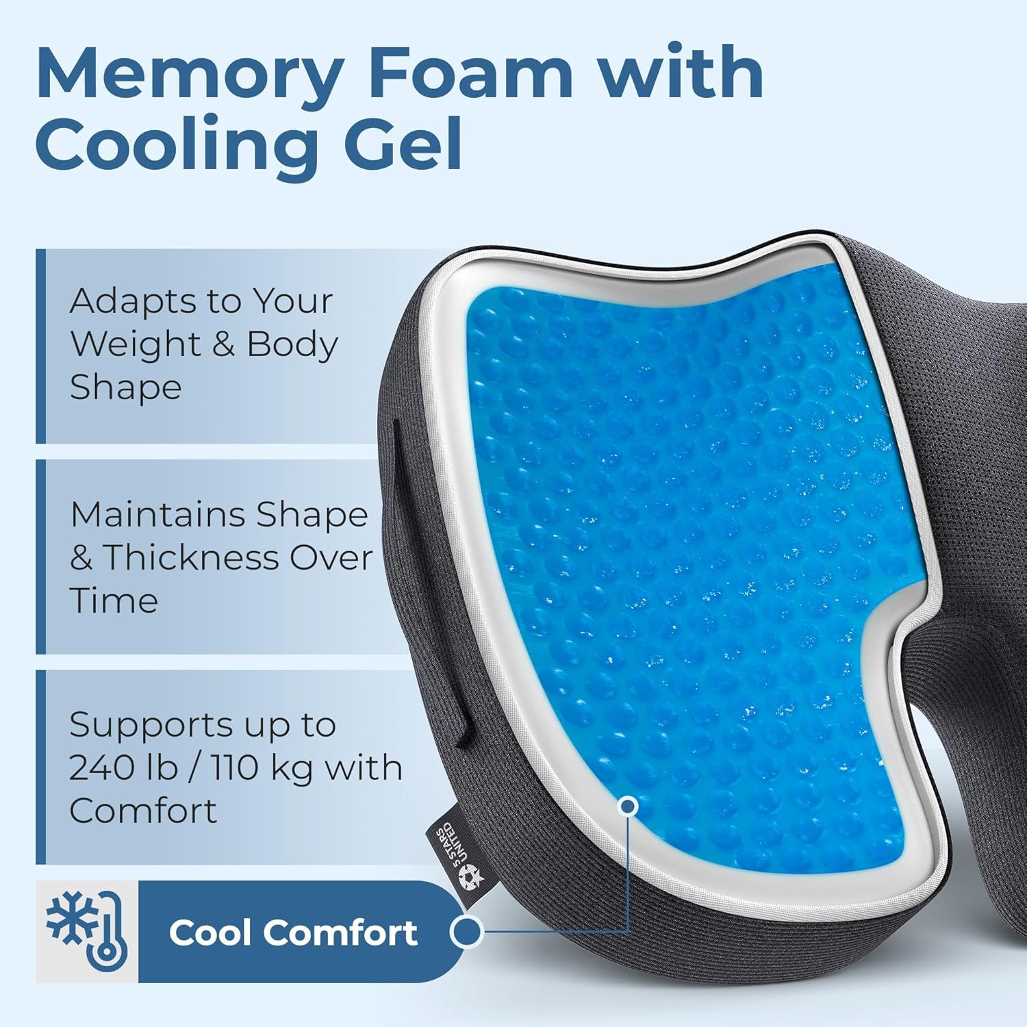 5 STARS UNITED Seat Cushion for Tailbone Pain Relief โ Memory Foam Cushion for Coccyx, Hemorrhoid, Sciatica & Post-Surgery Recovery โ Wheelchair, Car, Desk, Gaming & Office Chairs, Arctic Black