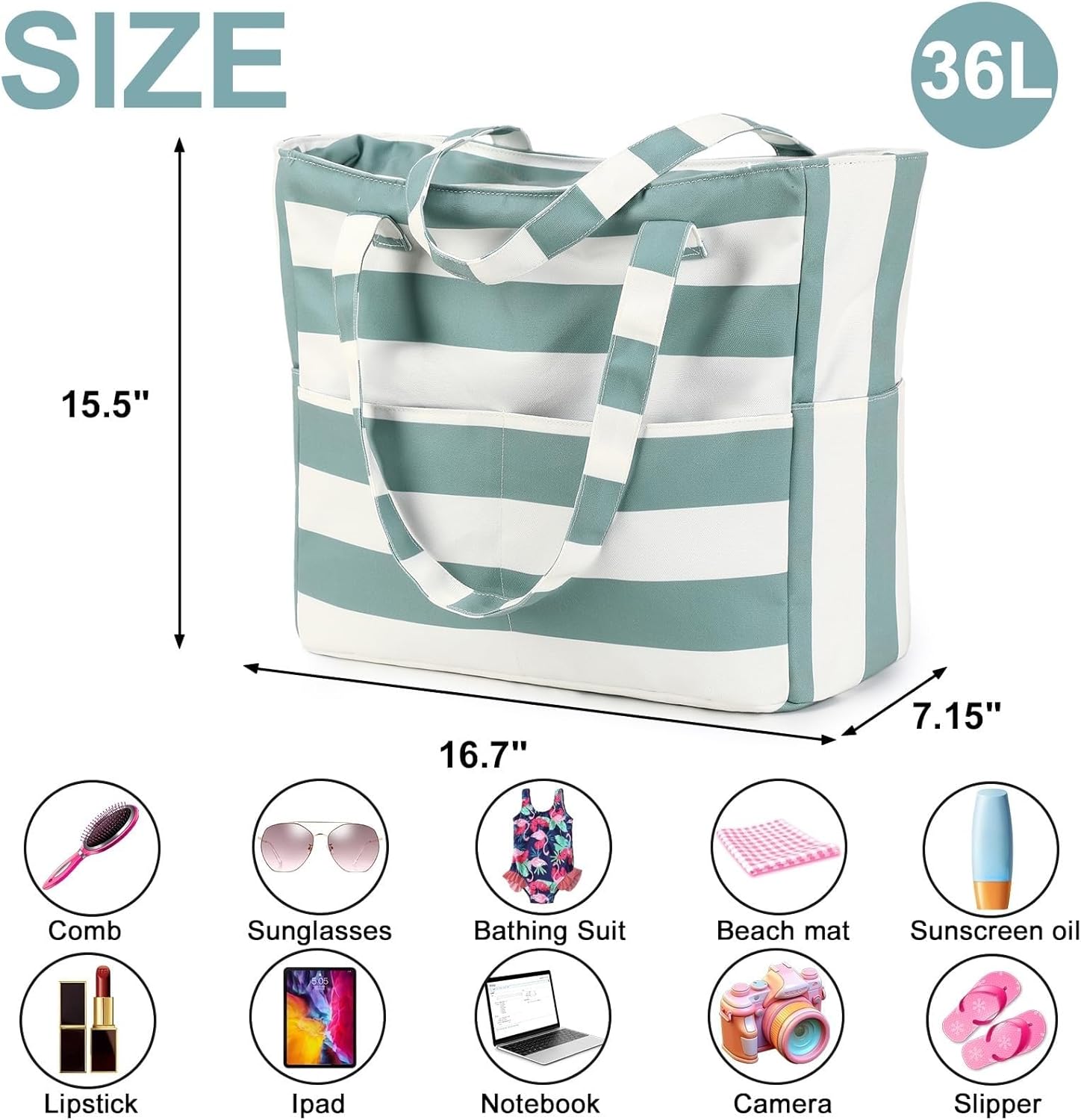 CAMTOP Waterproof Beach Tote Bag for Women Girls with Zipper Foldable Sandproof Pool Swim Bag Travel Carry On Gym