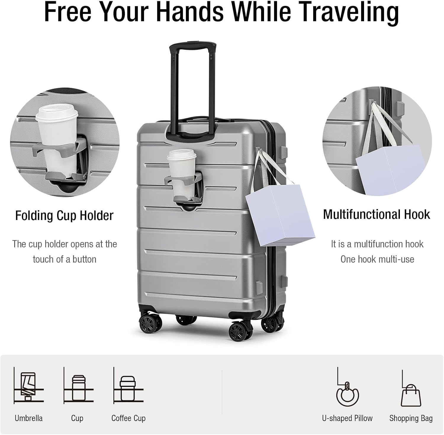 - Luggage With Cup Holder:Especially designed water/coffee bottle holder and multifunctional hook for umbrella or bag hooking.best luggage 2025 for your travel,college,family trip or gift choice
