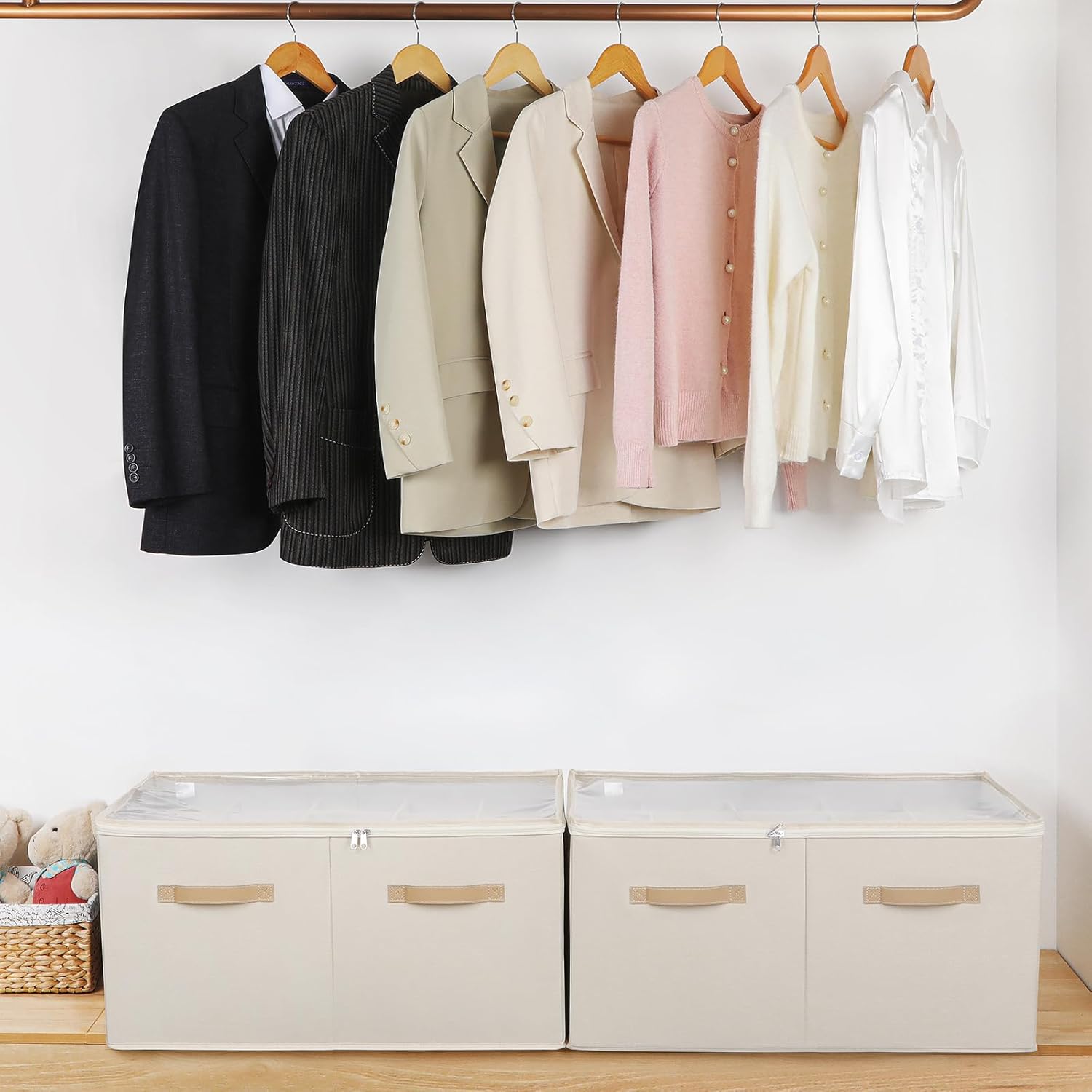 - Visual Design& Easy Access: The shoe basket has a transparent PVC lid that provides excellent visibility and allows for easy identification of the contents, making it easy for you to pick the shoes you need at any time. The lid also prevents dust. The durable zippers make the opening and closing of the shoe storage containers smooth and convenient, so you can store and take out the shoes without obstruction