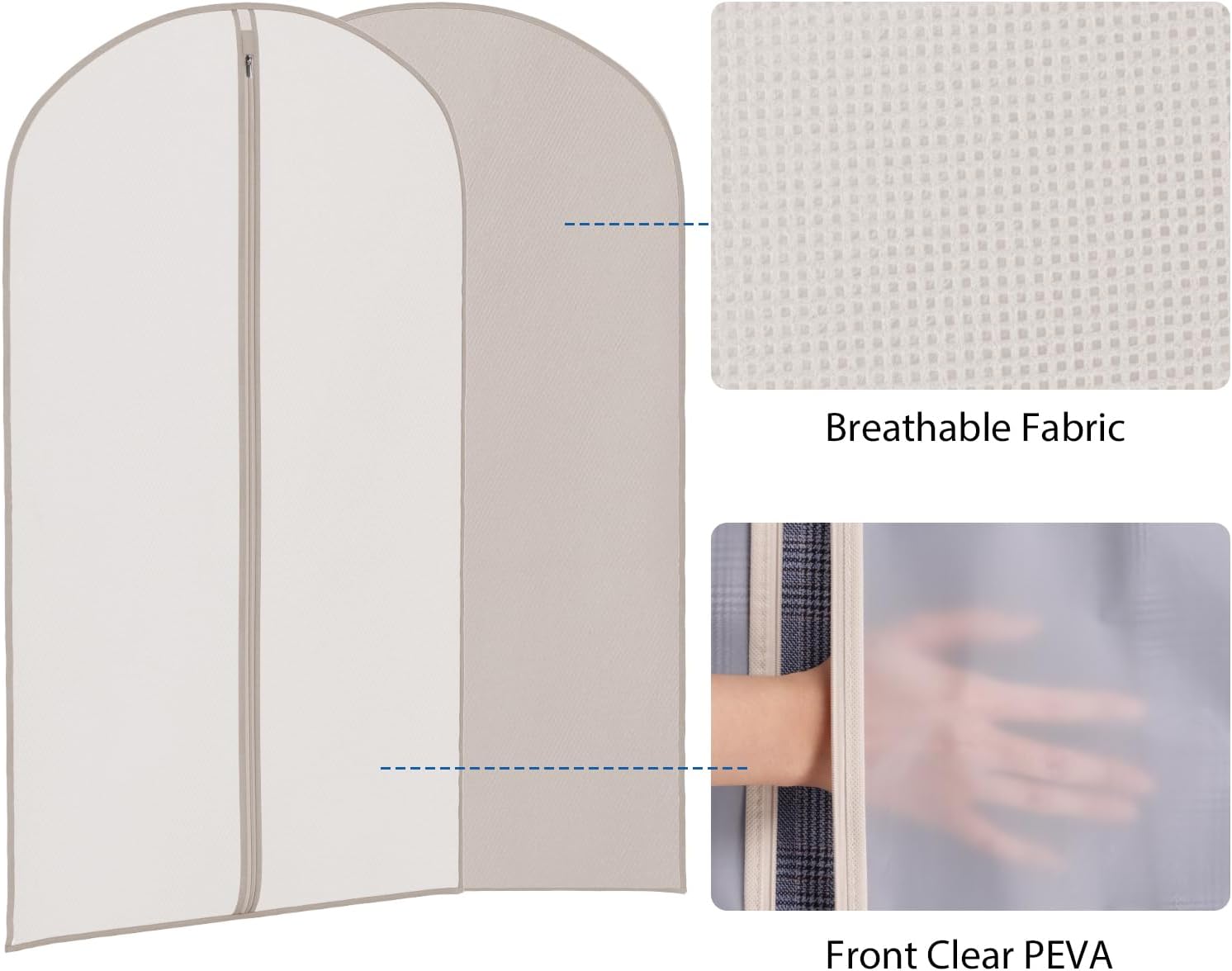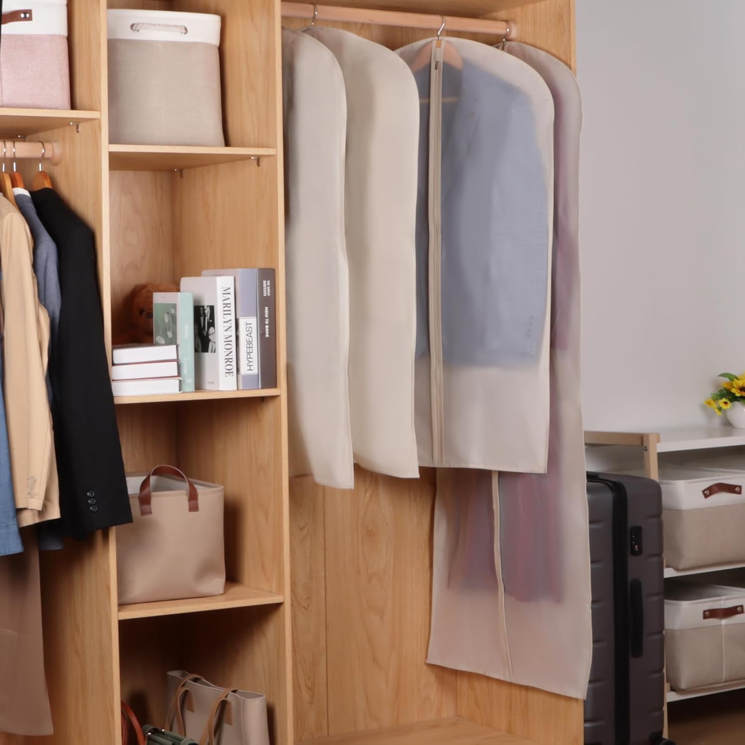 Zilink Suit Bags for Closet Storage and Travel 43" Hanging Storage Bags for Clothes Garment Bags for Storage, T-Shirt, Suits, Coats, Jackets - Beige, 8 Pack