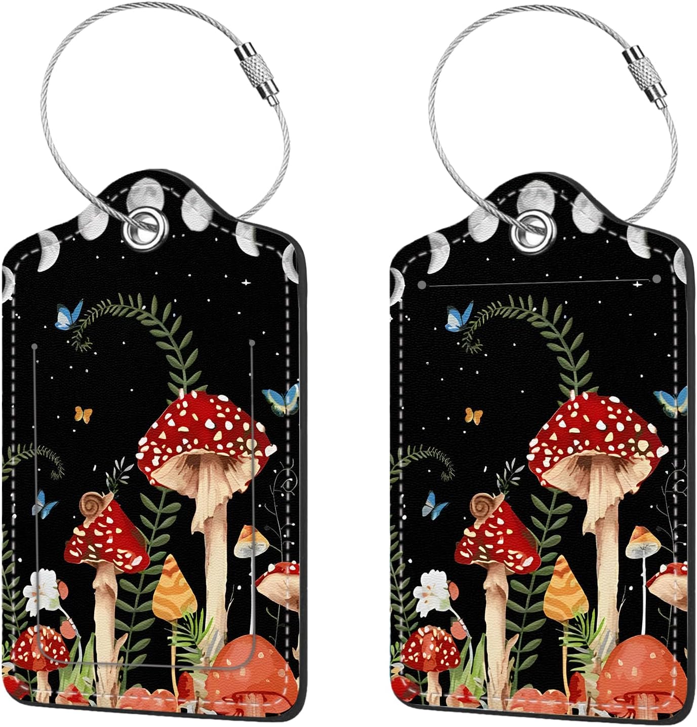 2 Pcs Luggage Tags for Suitcases,PU Leather Cruise Ship Luggage Tags with Privacy Cover Label Address Card and Durable Metal Ring Suitable for Men Women,Handbags Backpacks,Mushrooms Under The Stars