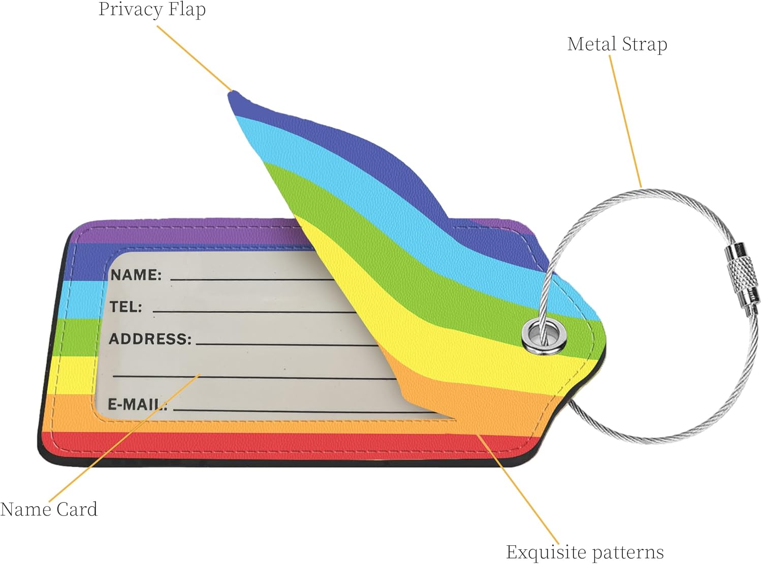 2 Pcs Luggage Tags for Suitcases, PU Leather Cruise Ship Luggage Tags with Privacy Cover Label Address Card and Durable Metal Ring Suitable for Men Women Handbags Backpacks SchoolBags,Rainbow Stripes
