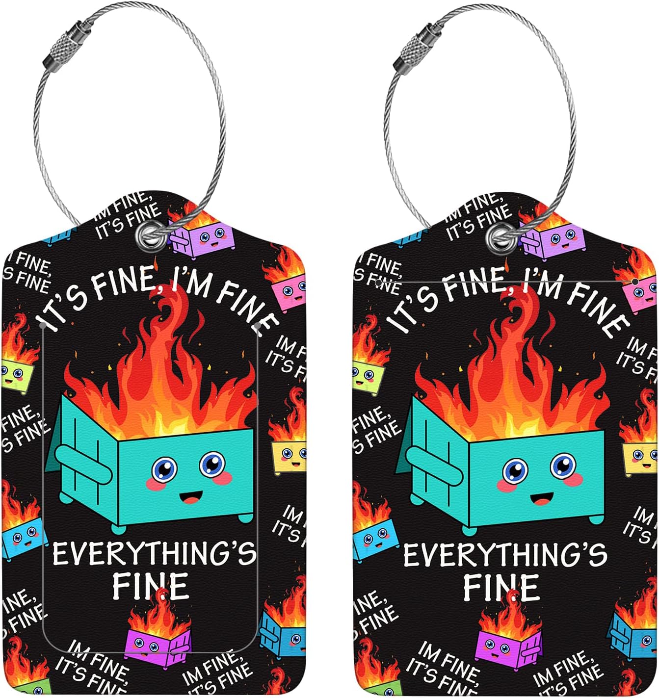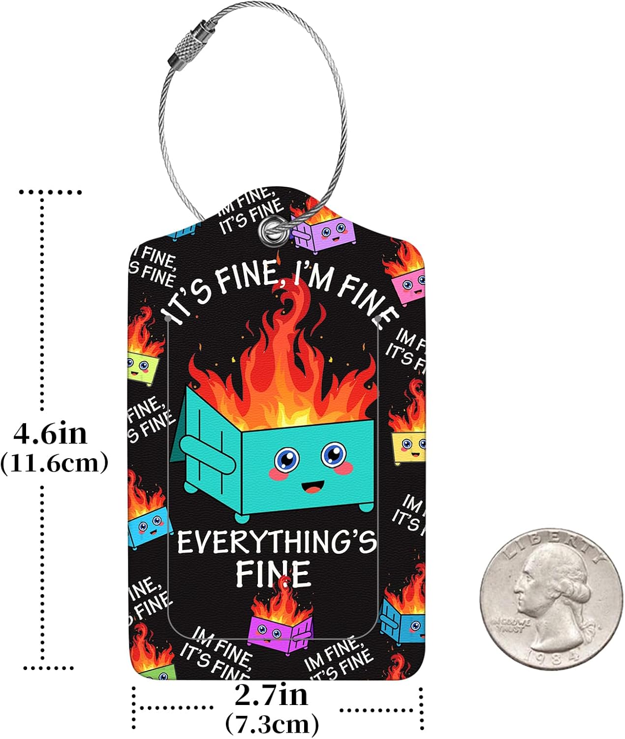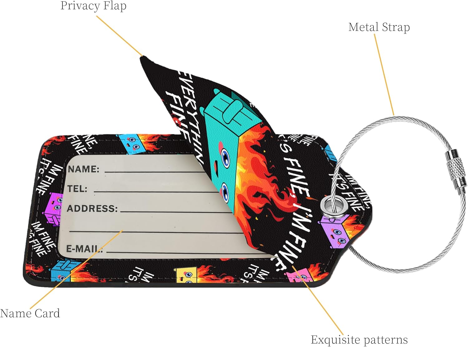 2 Pcs Luggage Tags for Suitcases, PU Leather Cruise Ship Luggage Tags with Privacy Cover Label Address Card and Durable Metal Ring Suitable for Men Women Handbags Backpacks Schoolbag,Dumpster Fire