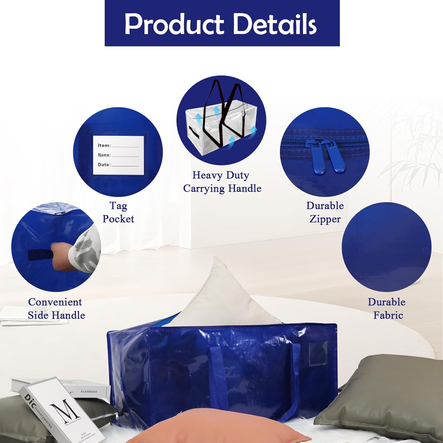 - Heavy-Duty 24-Gallon Extra Large Moving Bags: Crafted with ultra-durable, waterproof PP fabric, these 24-gallon heavy-duty moving bags withstand over 100 lbs of load. Ideal as plastic moving boxes alternatives, their tear-resistant design and reinforced handles ensure safe transport of clothes, bedding, or seasonal decor. Foldable for compact storage, they double as large storage totes with lids for garages or dorm rooms.