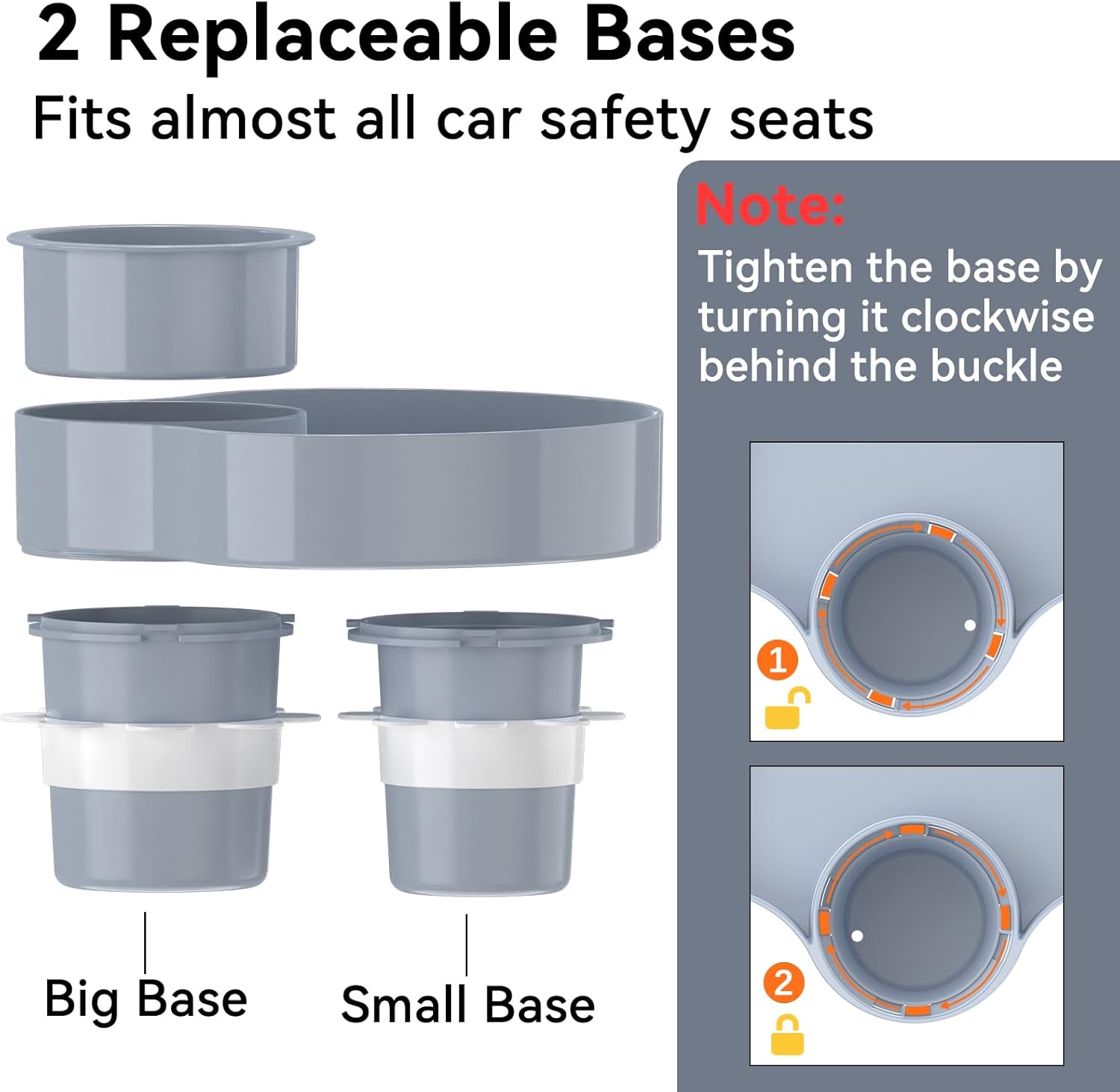 - [Wide compatibility] Two extended removable and replaceable base( big & samll), suitable for almost all car seats, including irregular cup holes. (Light Grey, 1 PCS)