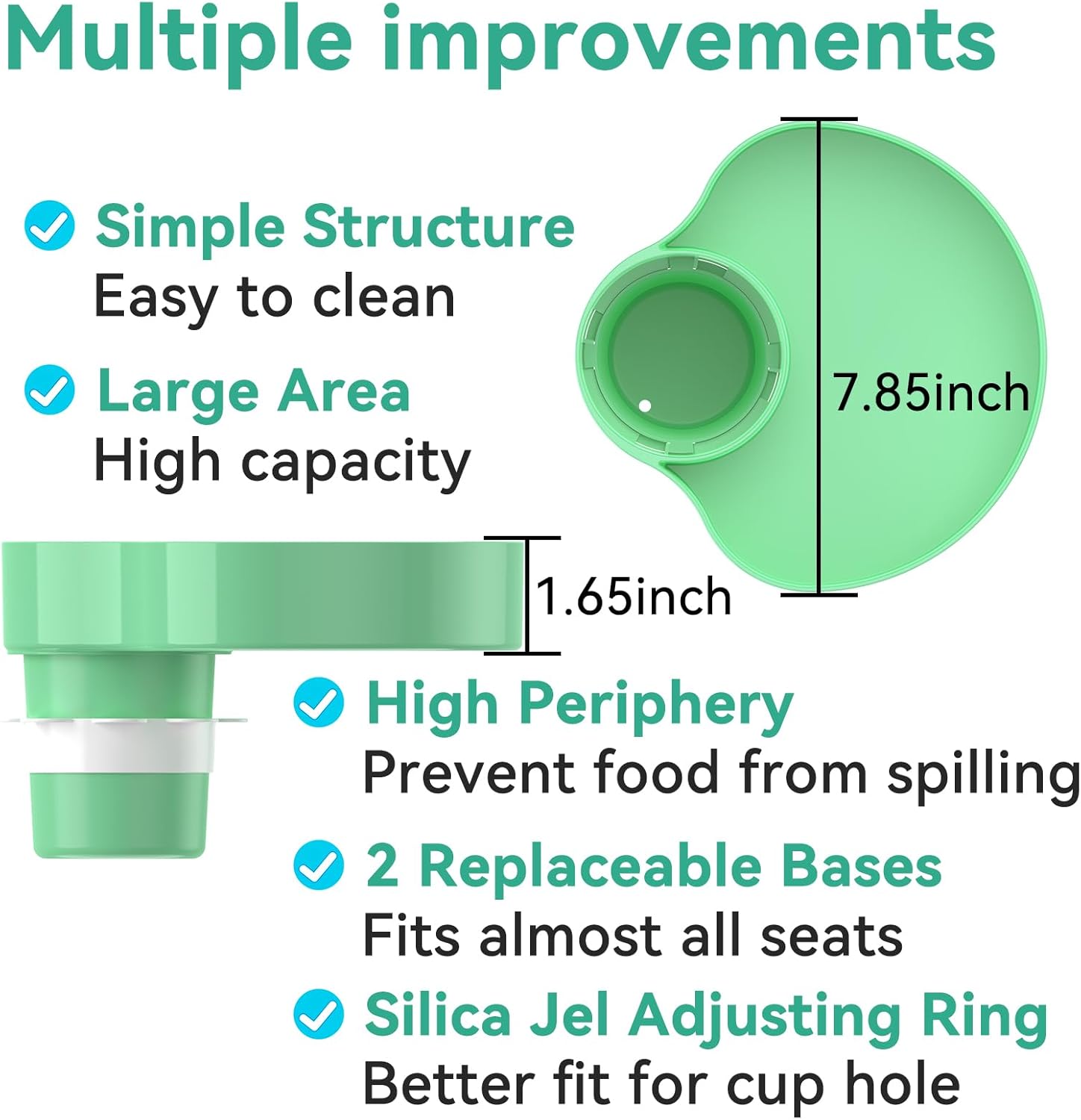 - [Big volume] The car seat food tray diameter up to 7.85 inches,big volume can store more food and snack.(Light Green, 2 PCS)